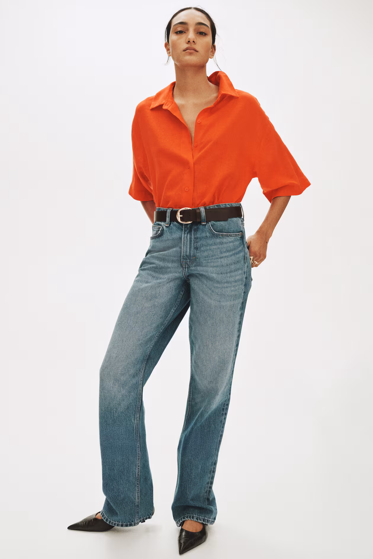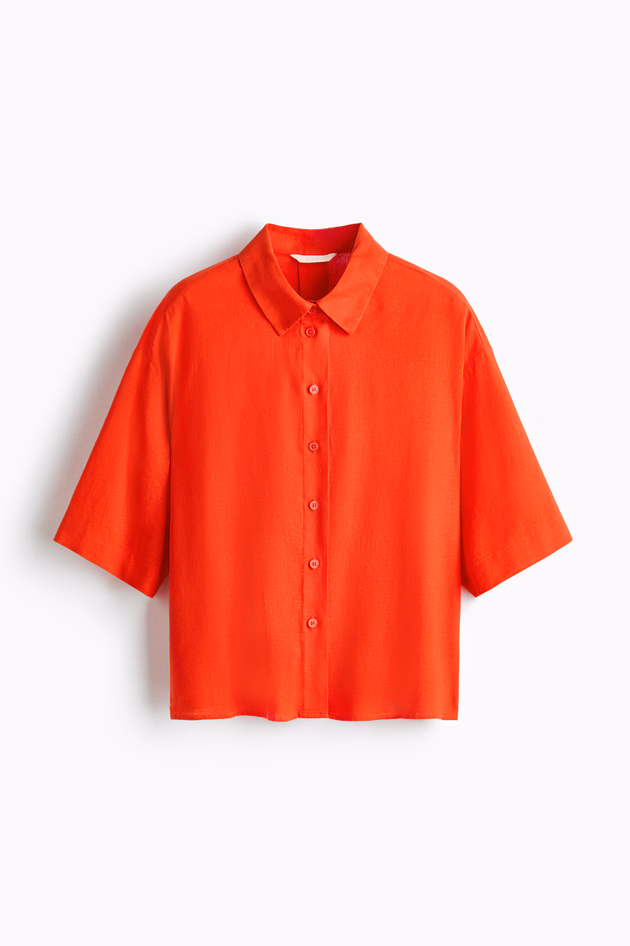Shirt in an airy weave made from a linen and viscose blend. Features a collar, buttons down the front, an inverted box pleat at the back, gently dropped shoulders and elbow-length sleeves.