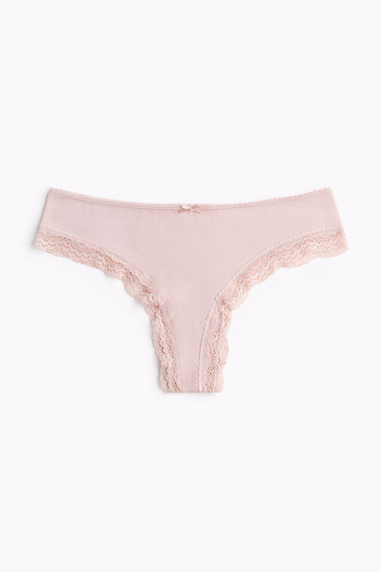 Brazilian briefs with lace trim. Low waist, high cut back, and lined gusset.