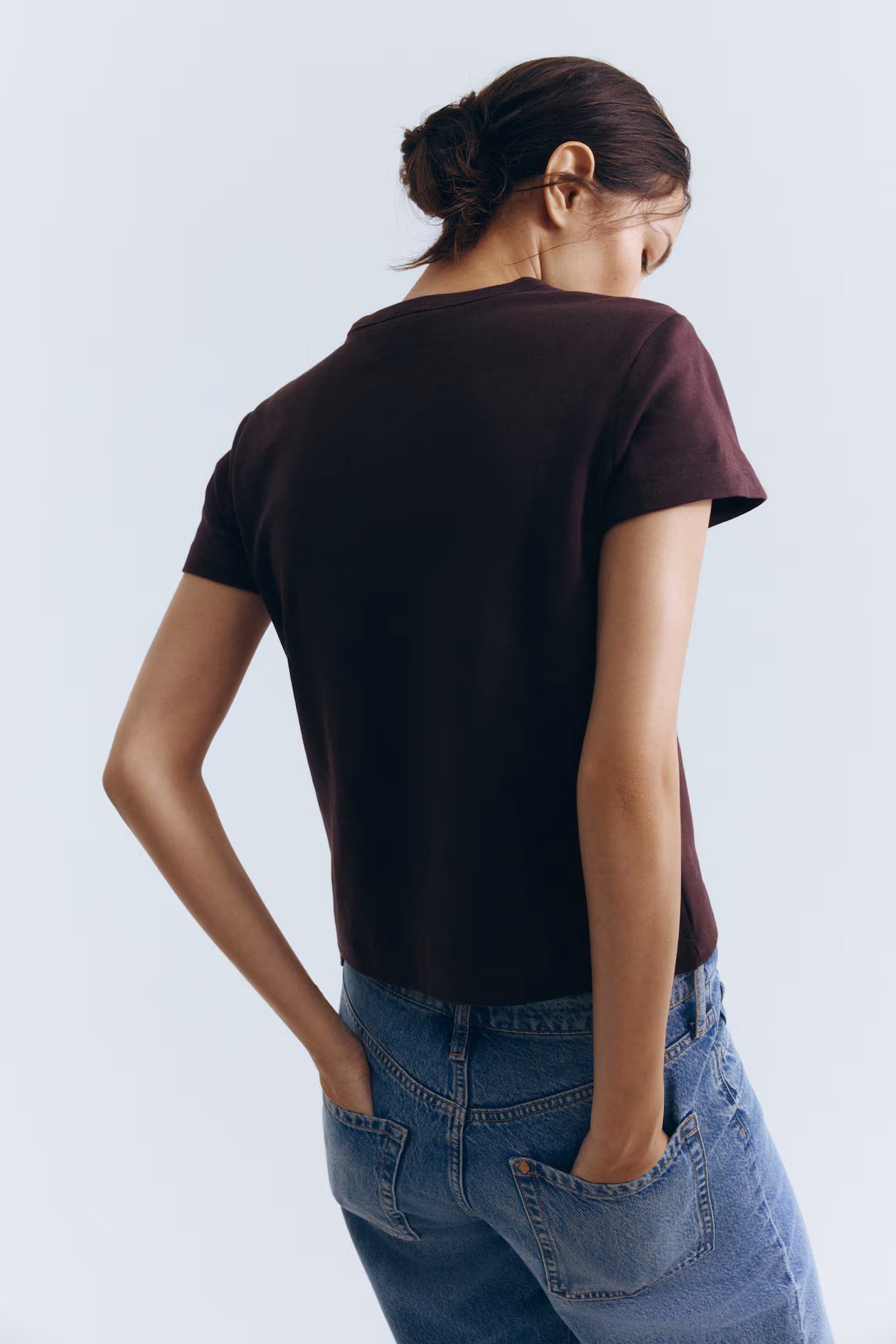 T-shirt in densely woven cotton jersey with a round, ribbed neckline.