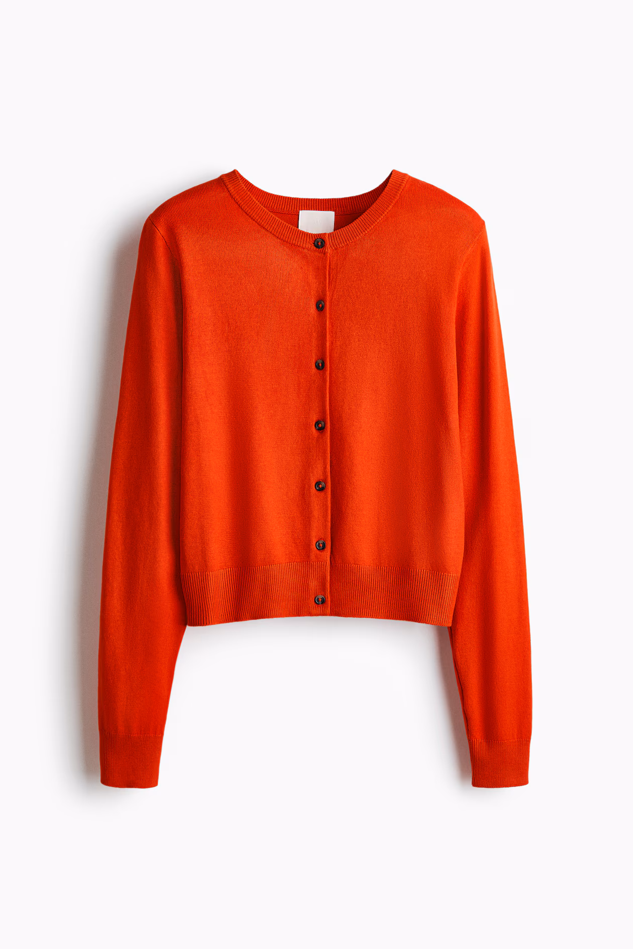 Fine-knit cardigan in a soft viscose blend. Buttons at front and ribbing at neckline, cuffs, and hem.