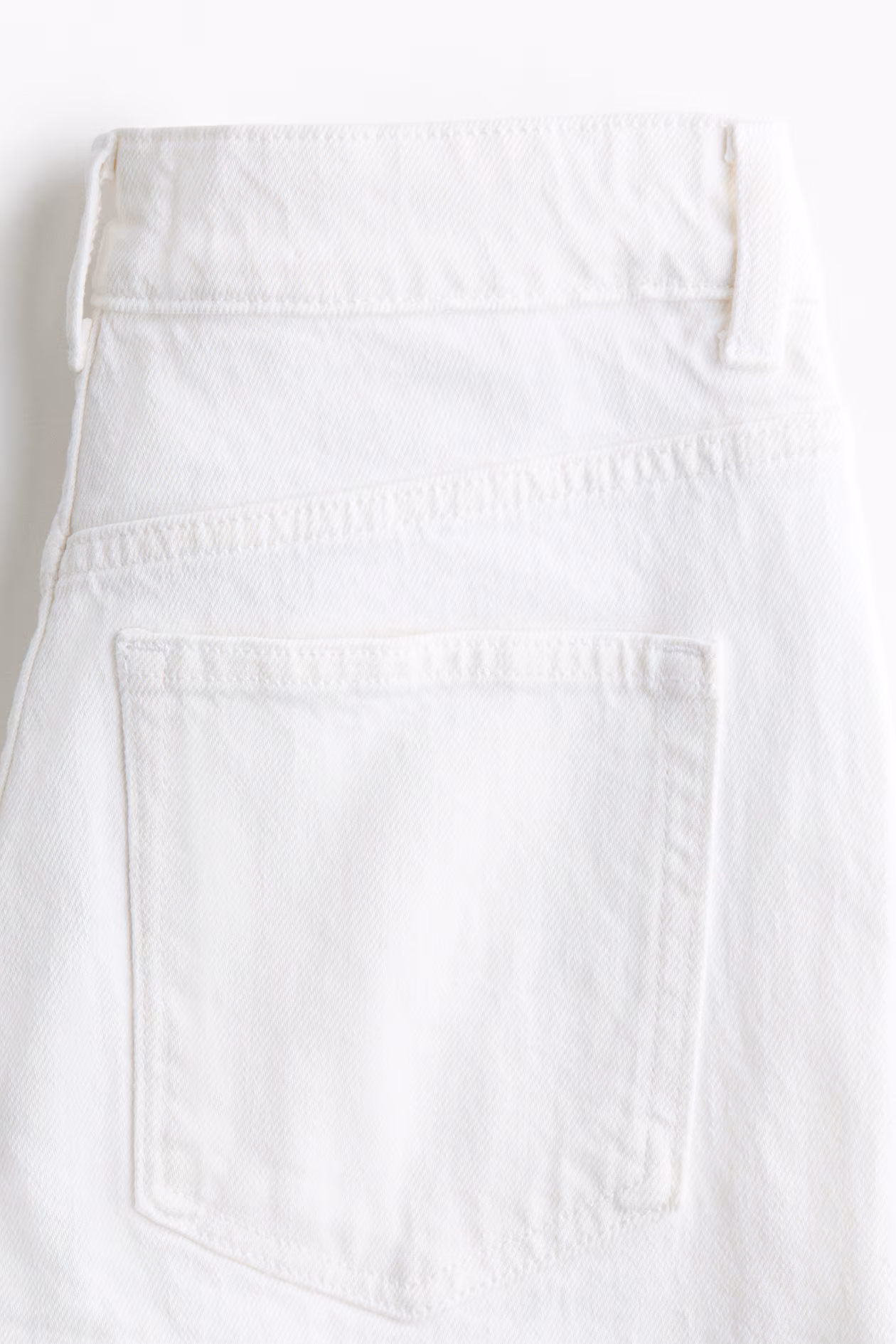 5-pocket jeans in washed cotton denim. High waist, zip fly and button and straight, wide legs.
