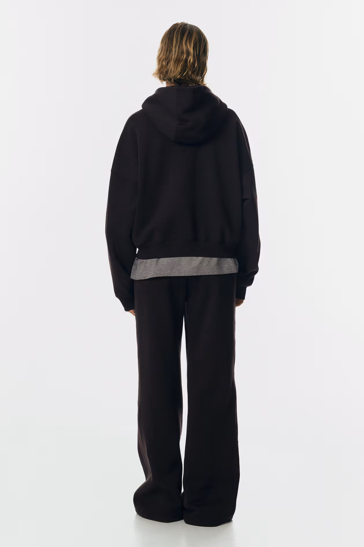 Loose-fit hooded sweatshirt jacket with a soft, brushed inside. Lined hood, zipper at front, and patch front pockets. Dropped shoulders, long sleeves, and ribbing at cuffs and hem.