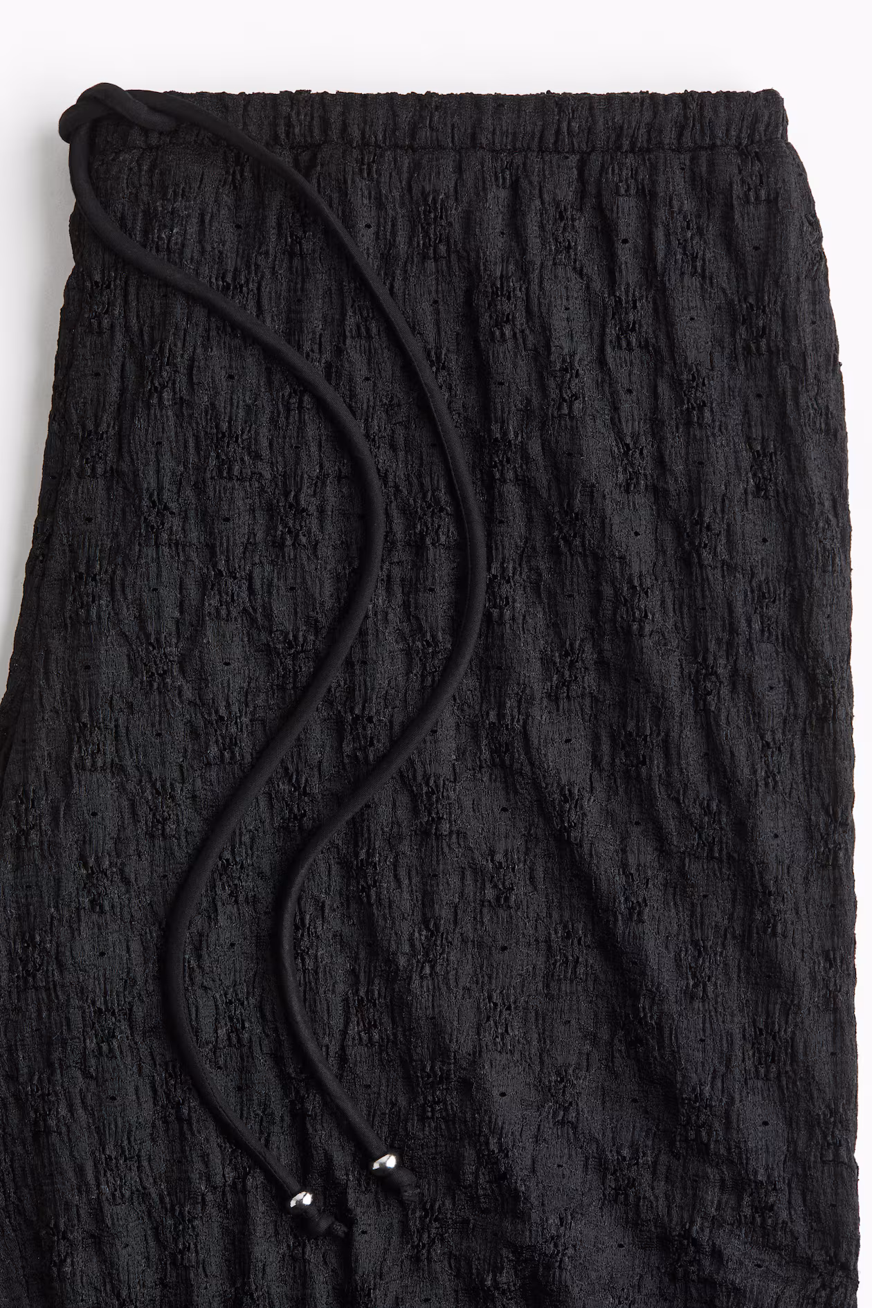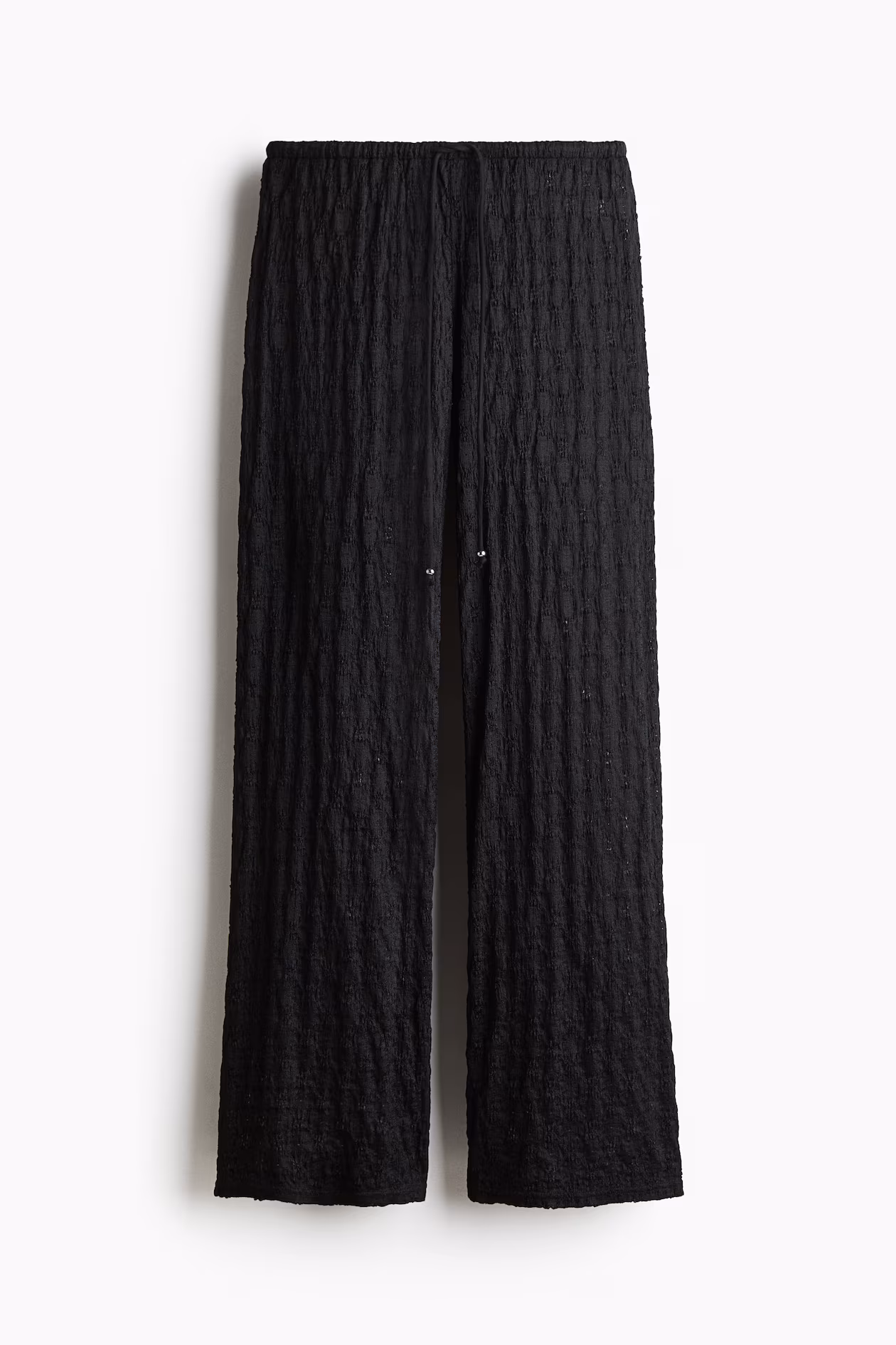 Loose-fit pants in soft, lace-look jersey. Low waist, drawstring and covered elastic at waistband, and extra-long legs.