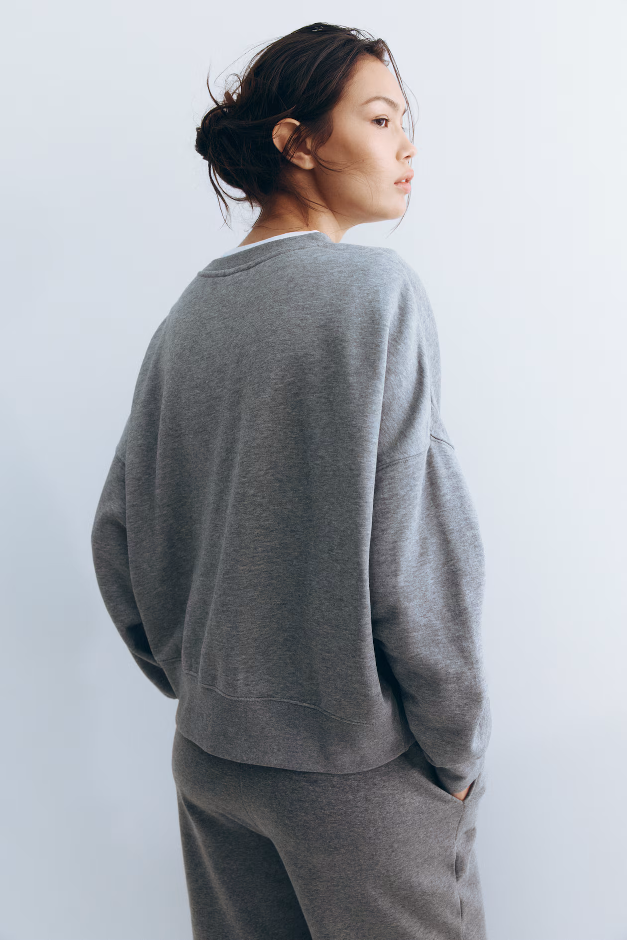 Oversized sweatshirt with a soft, brushed inside. Round neckline, dropped shoulders, and long sleeves. Ribbing at neckline, cuffs, and hem.