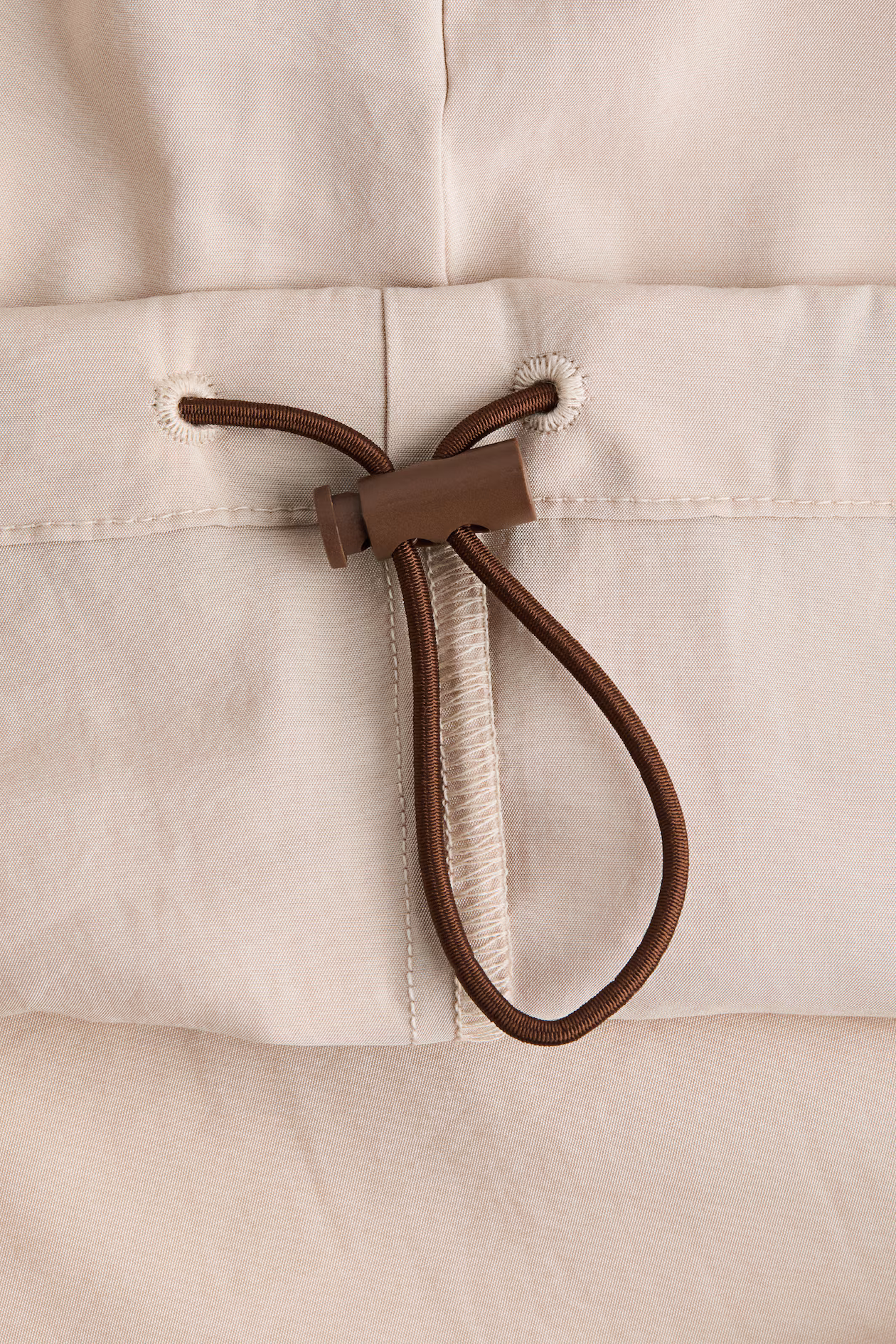 Oversized windbreaker in a woven modal blend. Chimney collar, drawstring hood with cord stoppers at front, a zipper at front, and welt side pockets with zipper. Raglan sleeves with elasticized cuffs, and an elasticized drawstring at hem with cord stoppers for a puffy silhouette. Unlined.