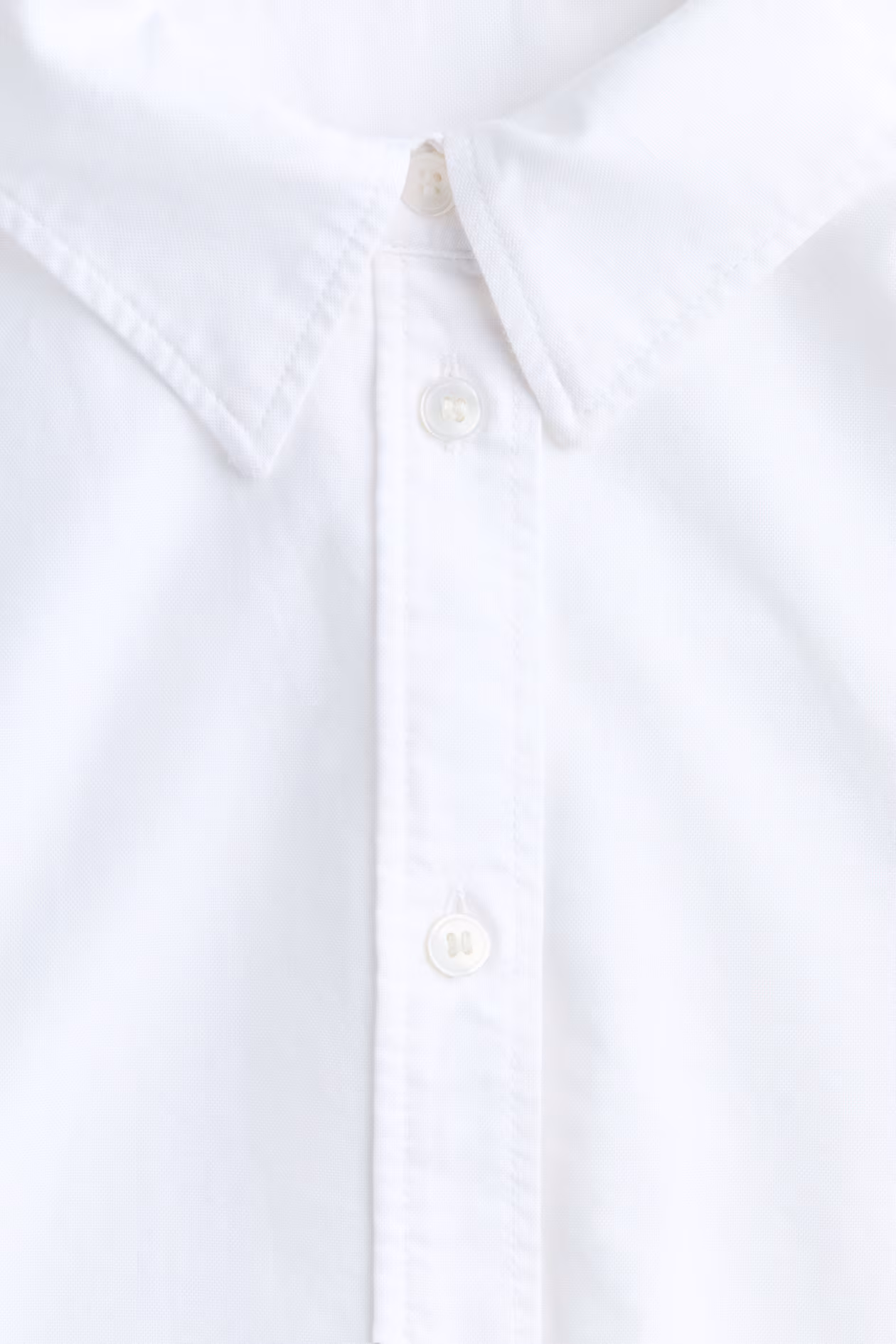 Relaxed-fit shirt in washed Oxford cotton. Collar, buttons at front, and yoke at back with locker loop. Dropped shoulders and long sleeves with button at cuffs. Rounded hem, slightly longer at back.
