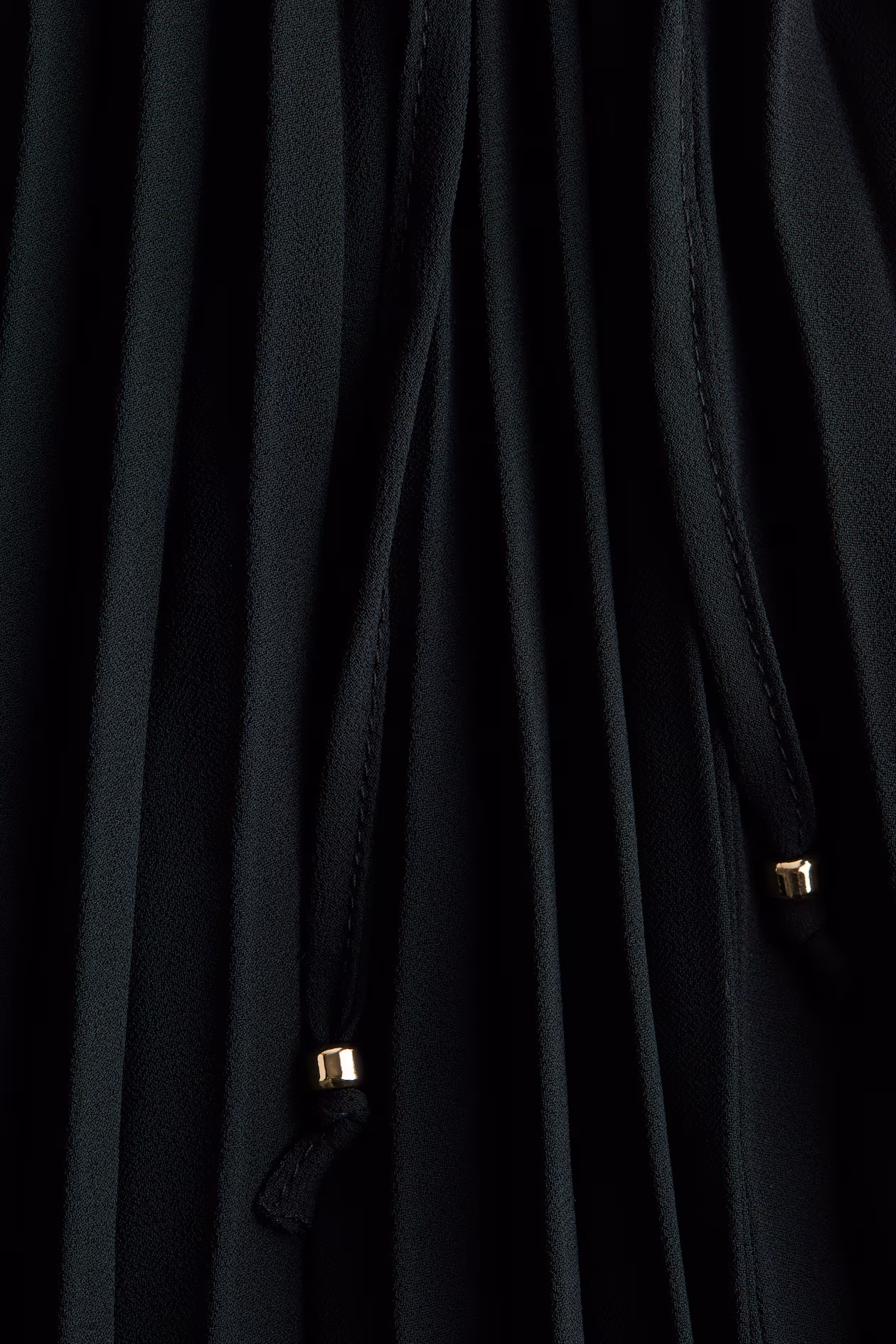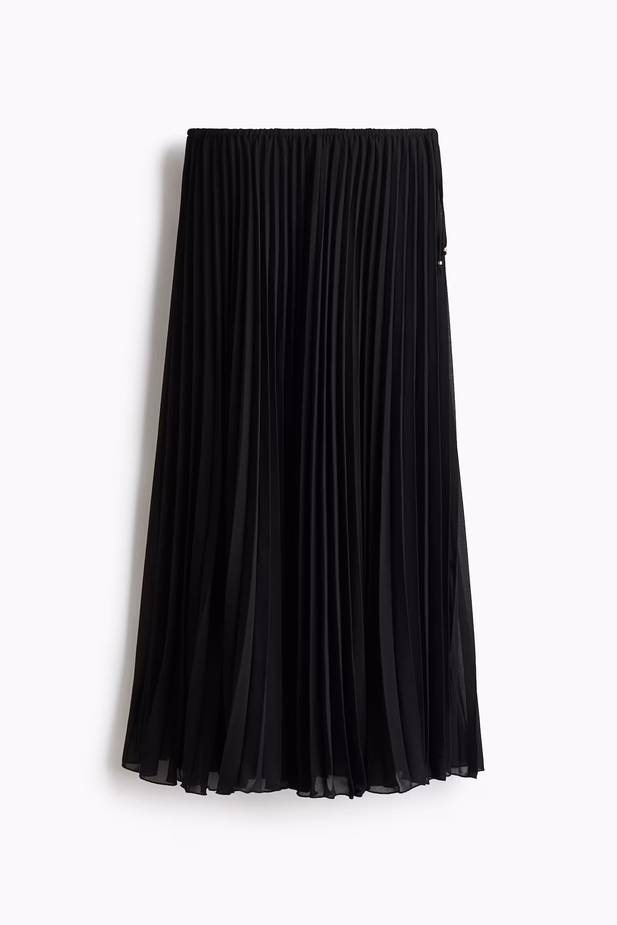 Loose-fit, calf-length skirt in pleated chiffon with a high waist. Covered elastic at waistband with a beaded-end drawstring at one side. Lined.