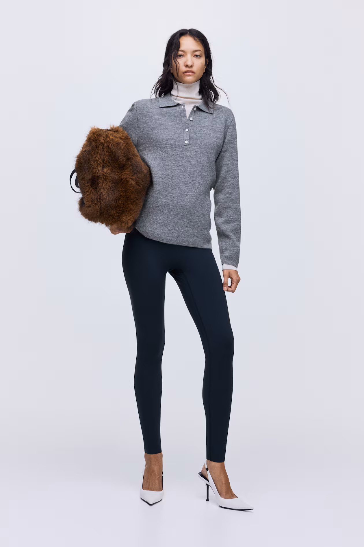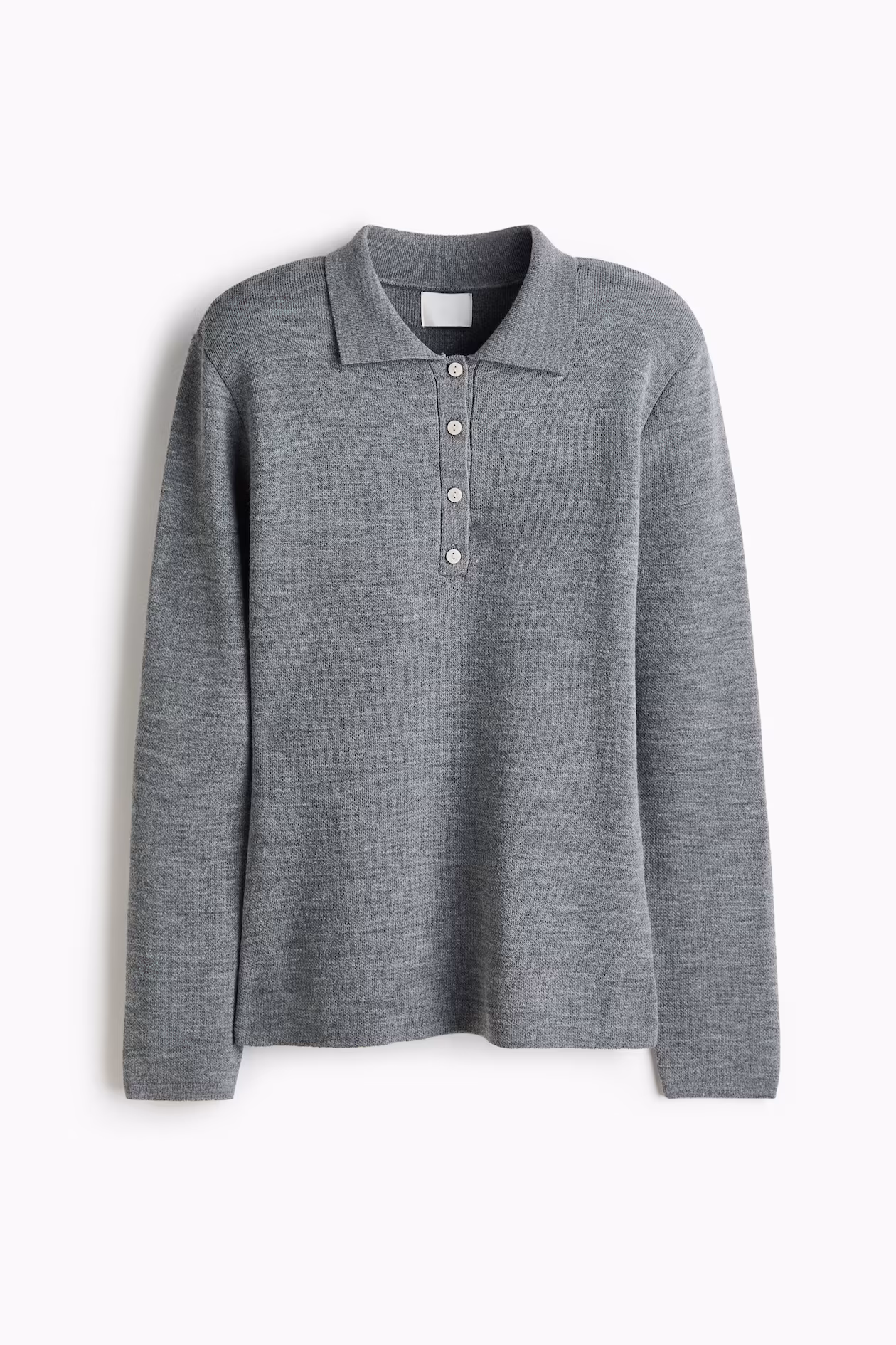 Polo sweater in a soft knit with a classic collar and short button placket. Shoulder pads for a defined silhouette and long sleeves.