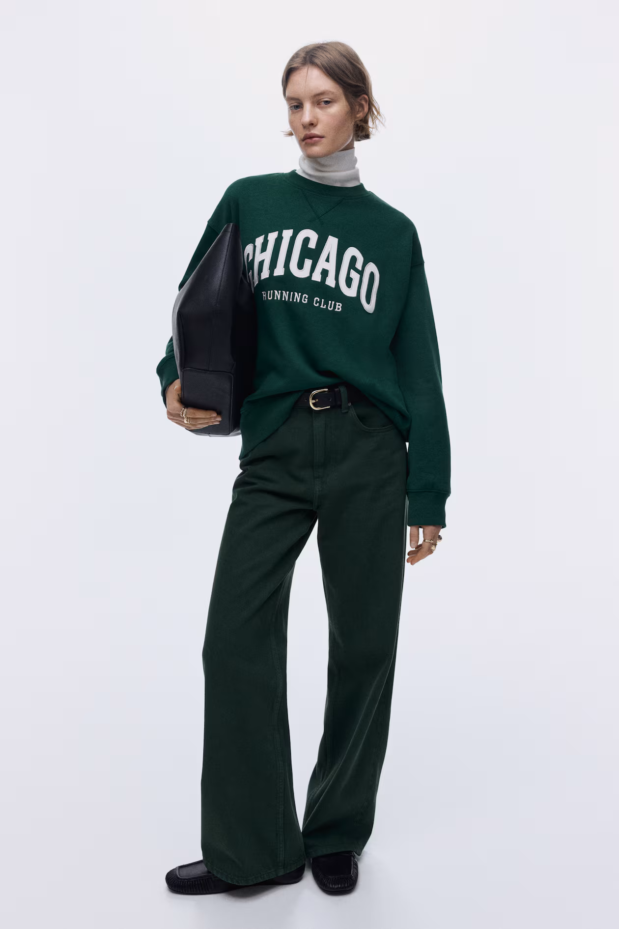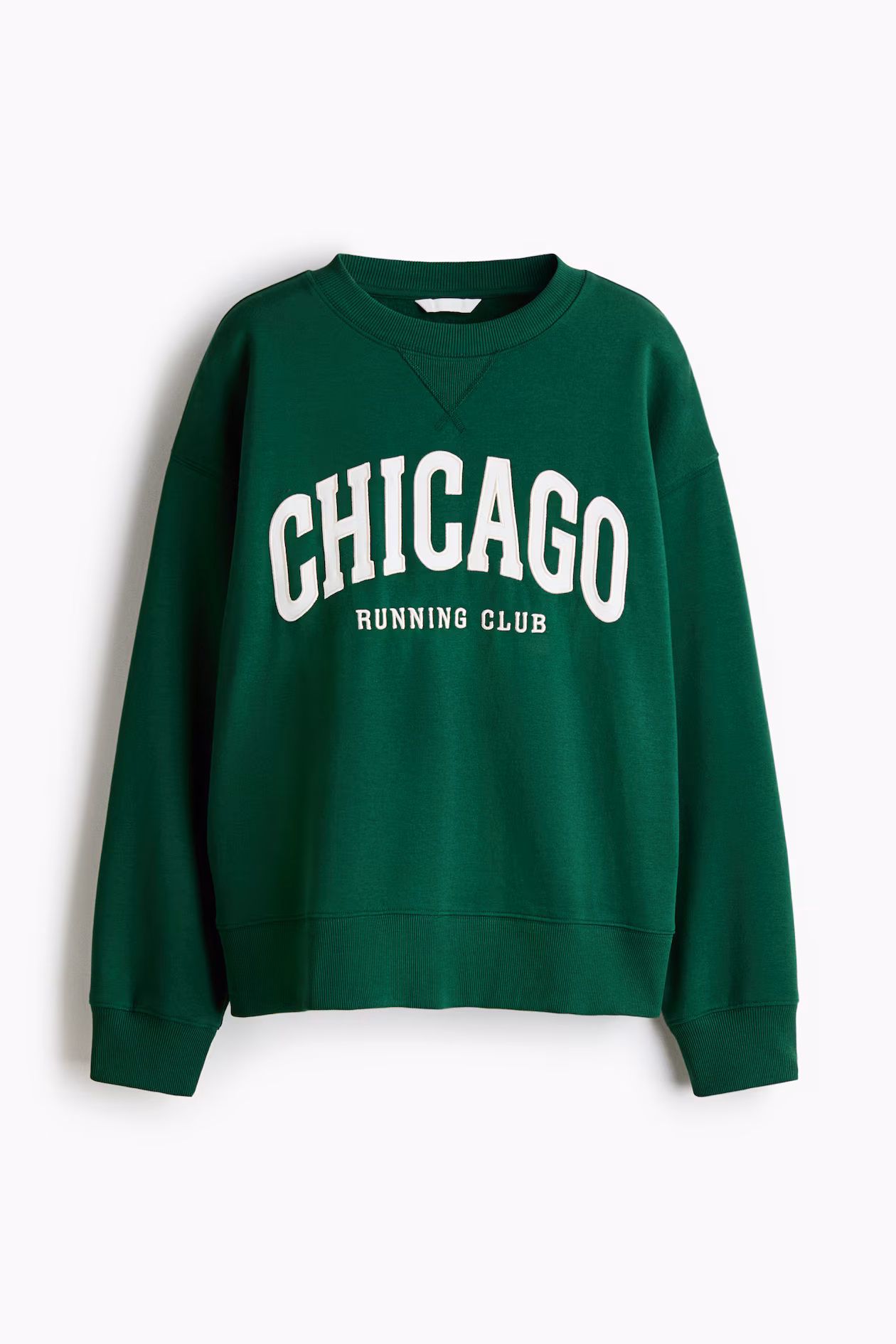 Oversized sweatshirt with a motif detail at front and a soft, brushed inside. Round neckline, dropped shoulders, and long sleeves. Ribbing at neckline, cuffs, and hem.