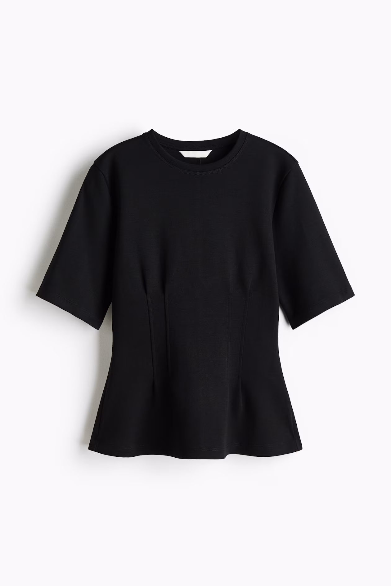 Long T-shirt in thick interlock jersey. Shaping darts at front of waist for a tapered silhouette. Round neckline.
