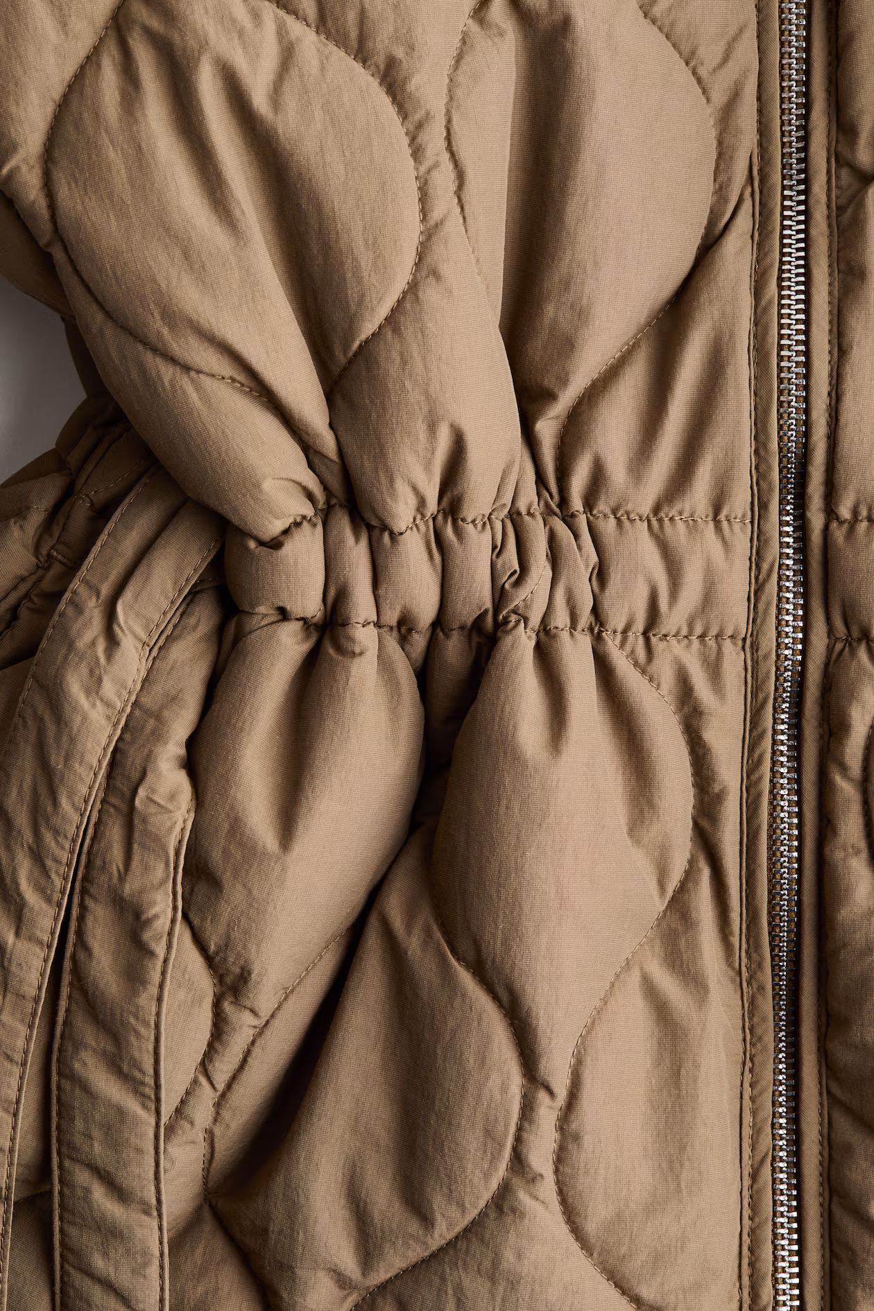 Lightly padded jacket in quilted nylon. Round neckline, zipper at front, gently dropped shoulders, and discreet side pockets. Drawstring at sides of waist for a defined silhouette. Lined. Made with insulating THERMOLITE® fiber – an engineered hollow fiber that traps air and provides lightweight warmth.