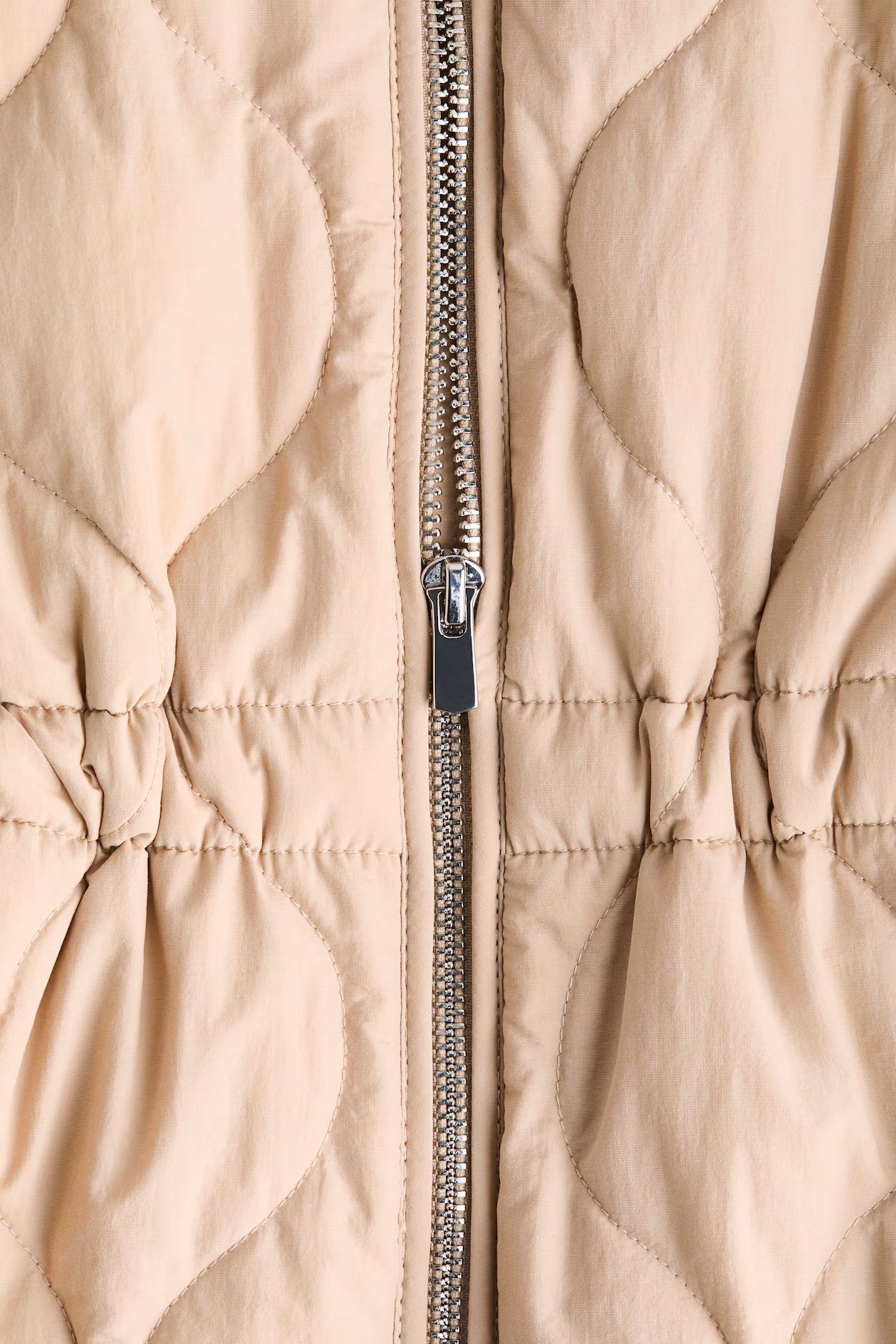 Lightly padded jacket in quilted nylon. Round neckline, zipper at front, gently dropped shoulders, and discreet side pockets. Drawstring at sides of waist for a defined silhouette. Lined. Made with insulating THERMOLITE® fiber – an engineered hollow fiber that traps air and provides lightweight warmth.