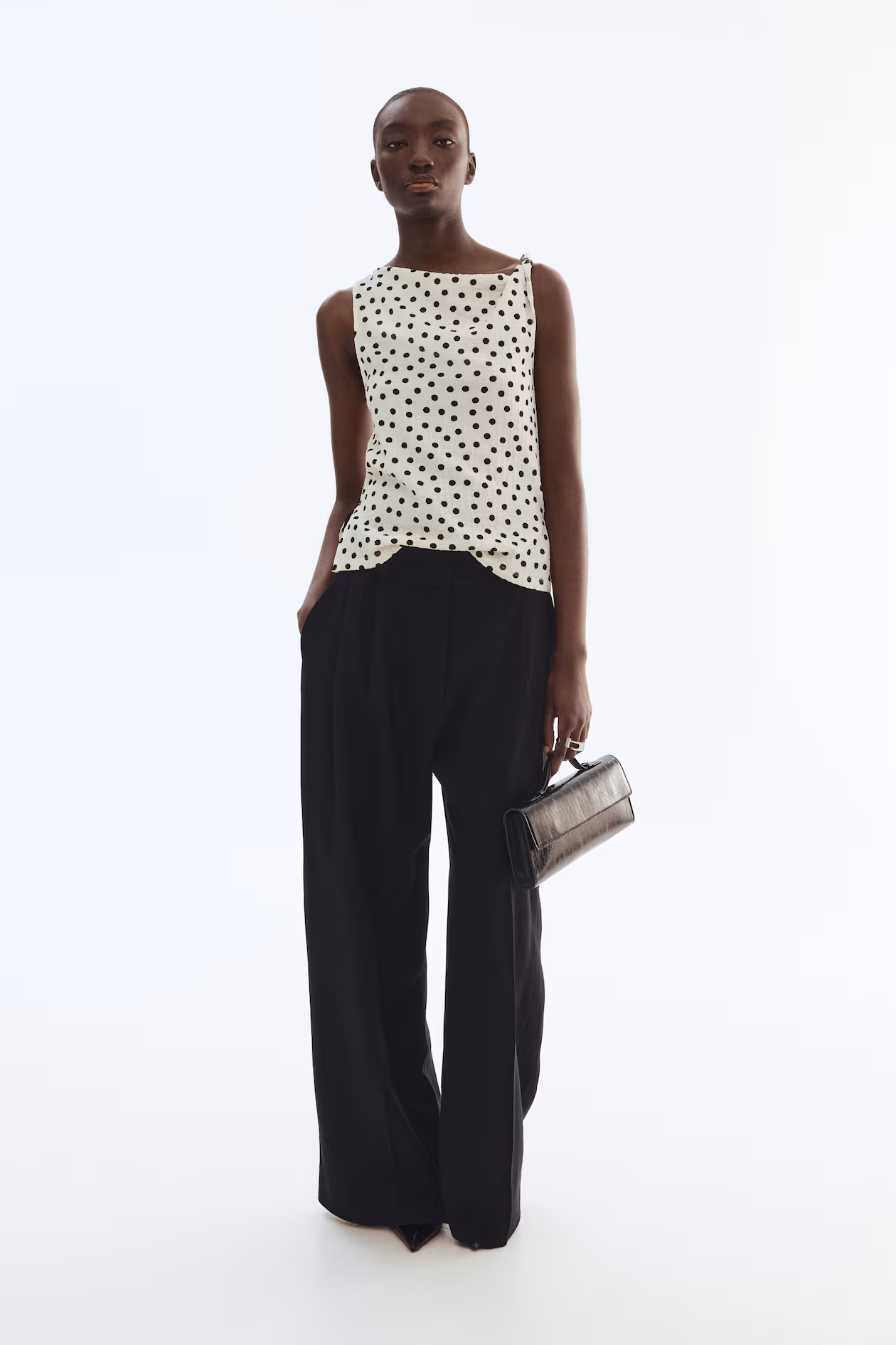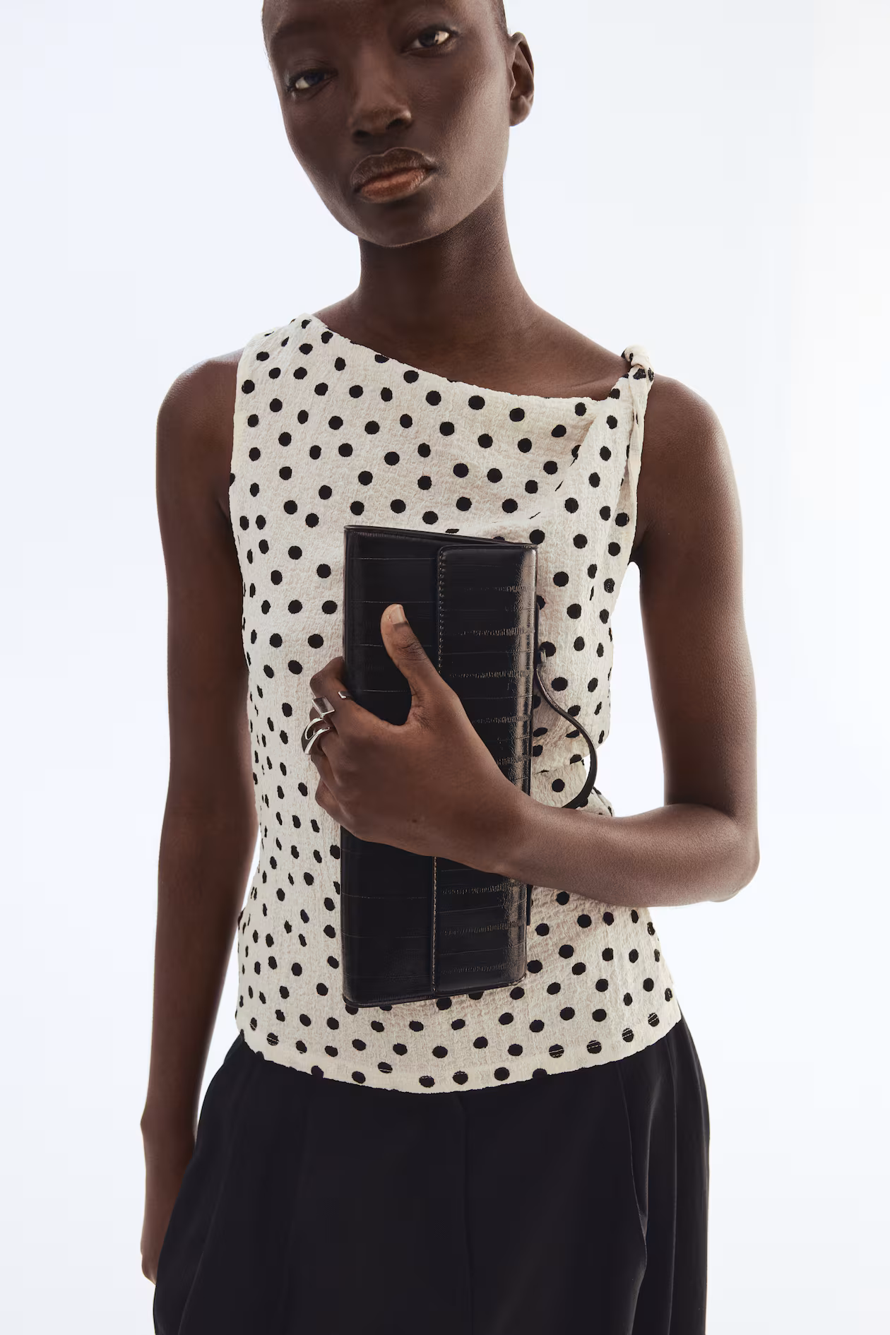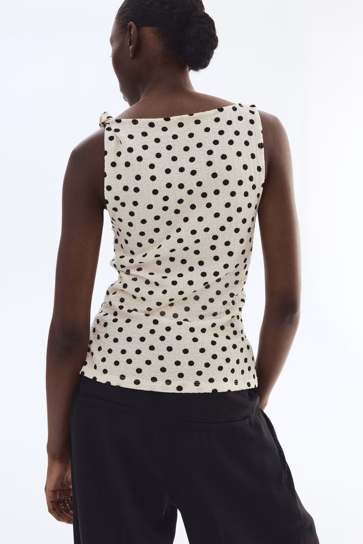 Fitted, sleeveless top in textured jersey with an asymmetric neckline. Twisted shoulder strap for a gently draped effect.