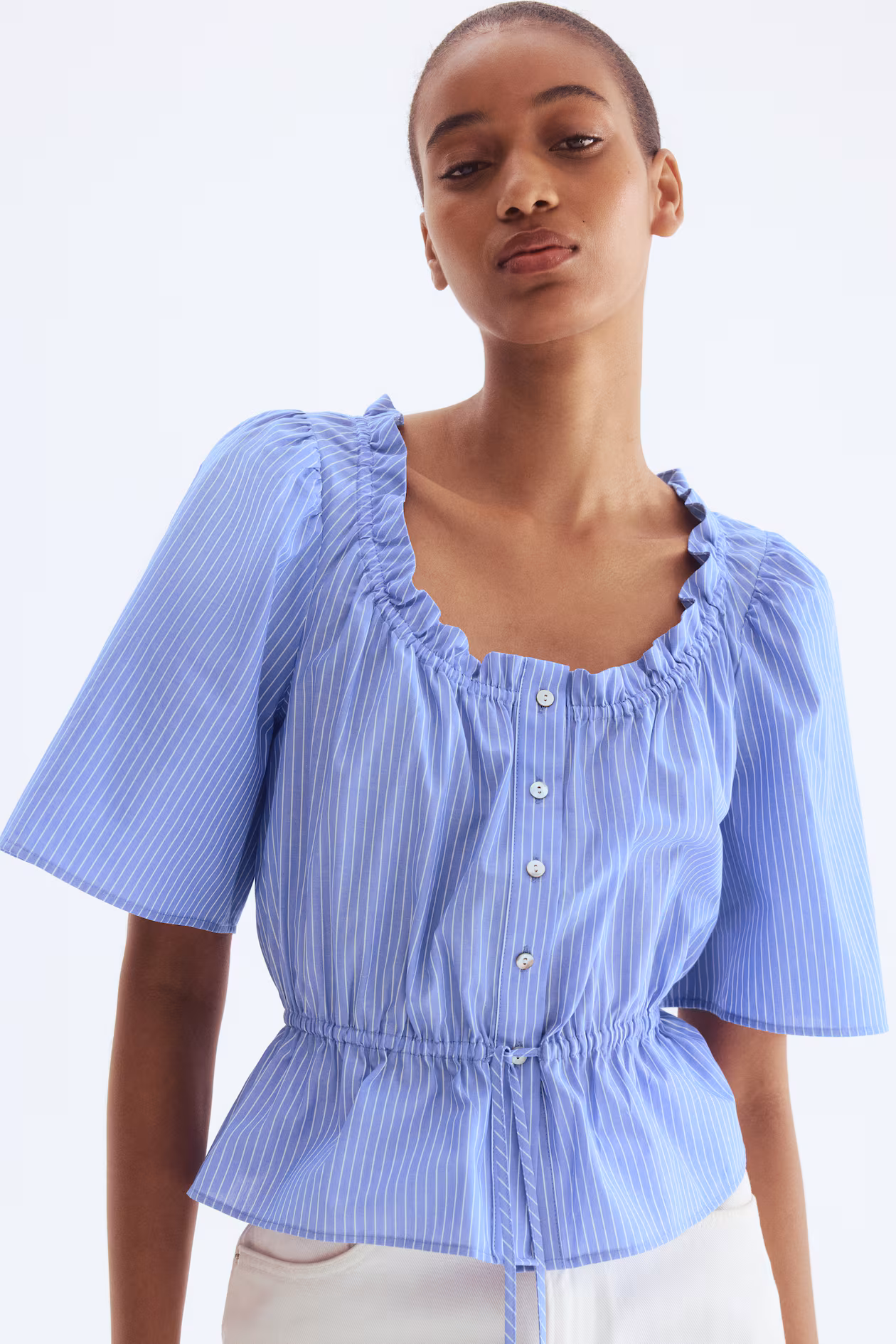 Ruffle-Trimmed Cotton Blouse