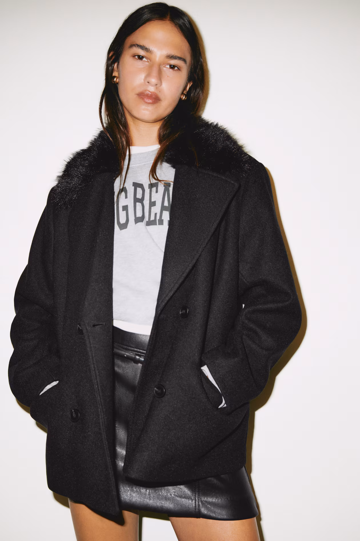 Pea Coat with Fluffy Collar