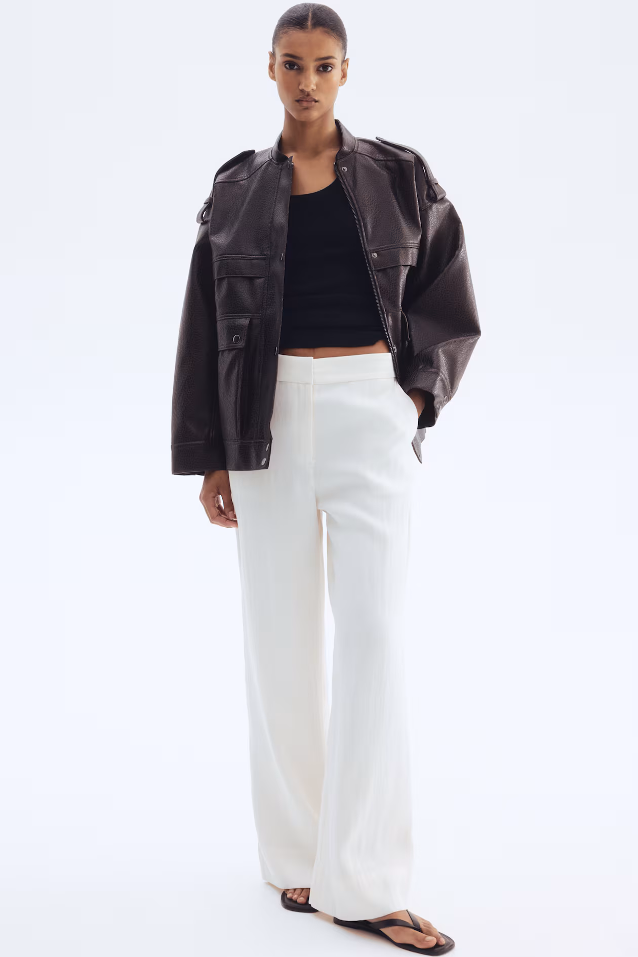 Wide-Leg Twill Pants