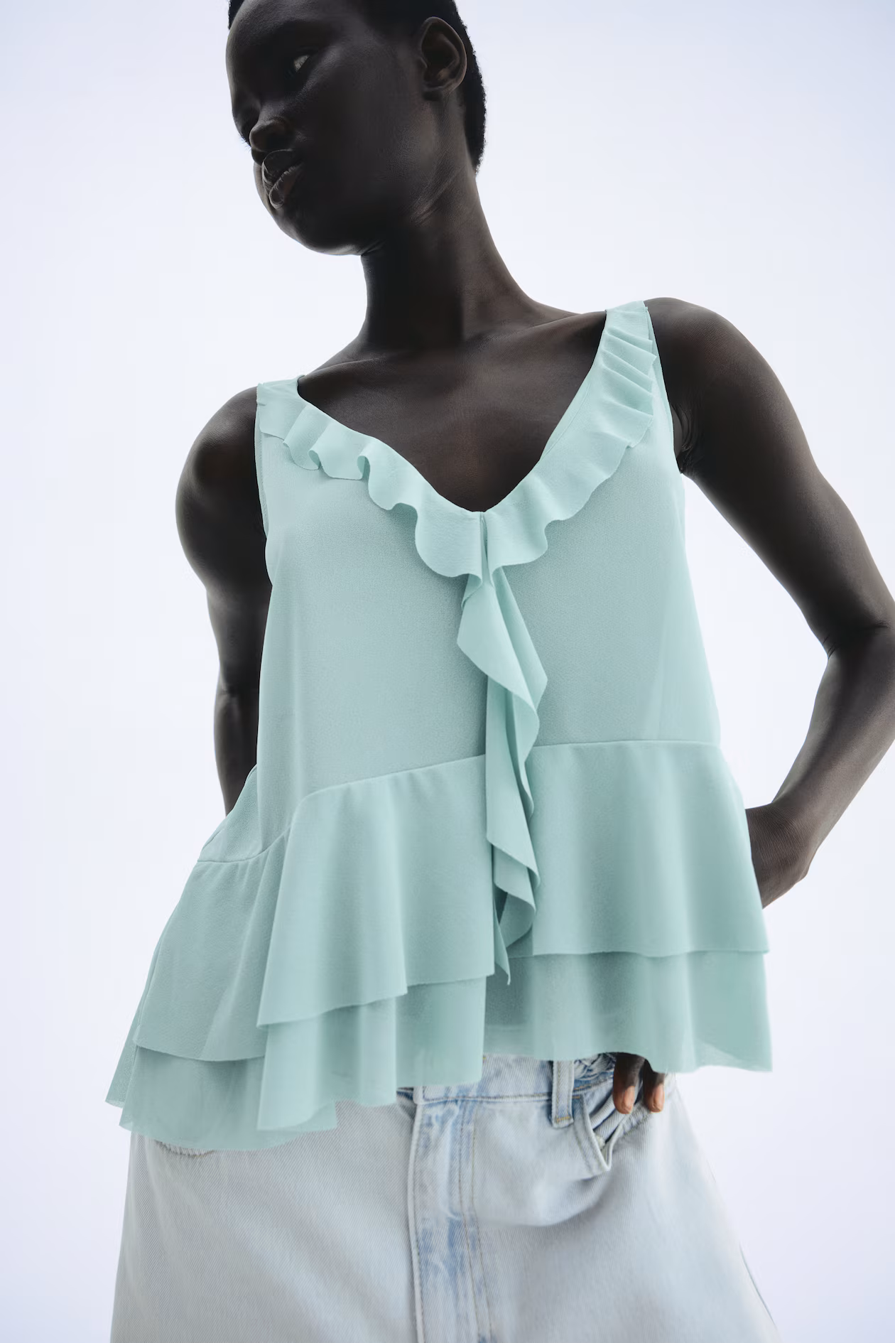 Flounced Sleeveless Top