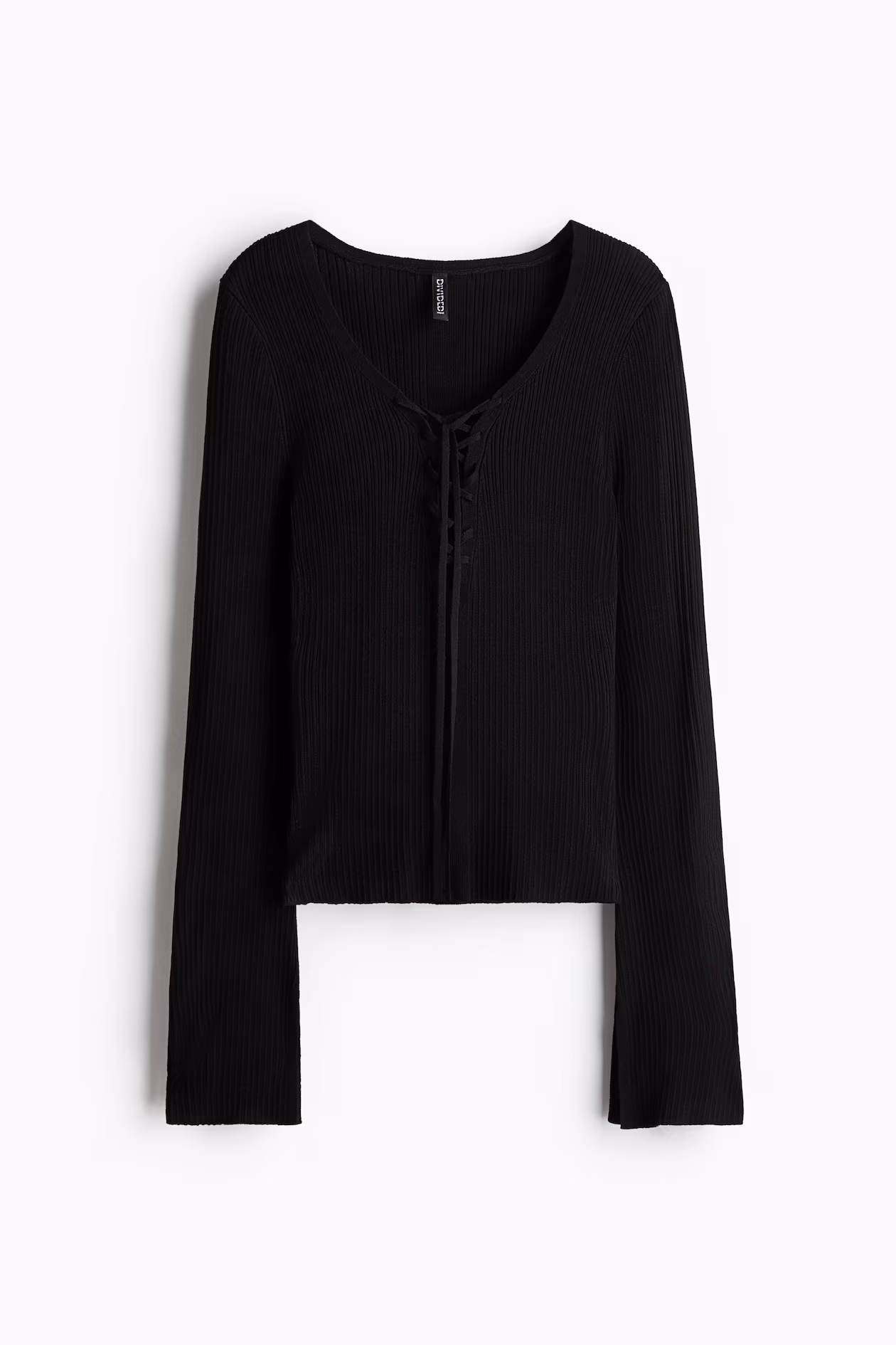 Lacing-Detail Rib-Knit Top
