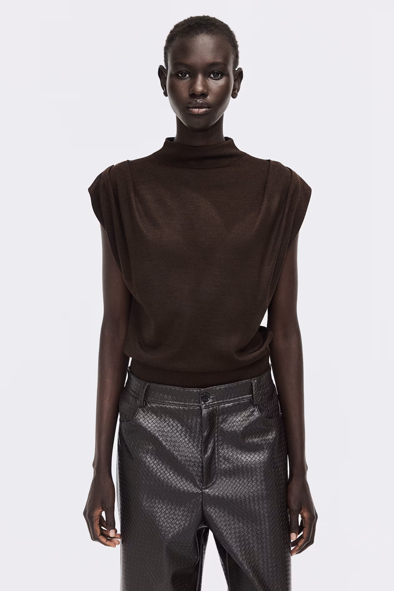 One-Sleeve Mock Turtleneck Top