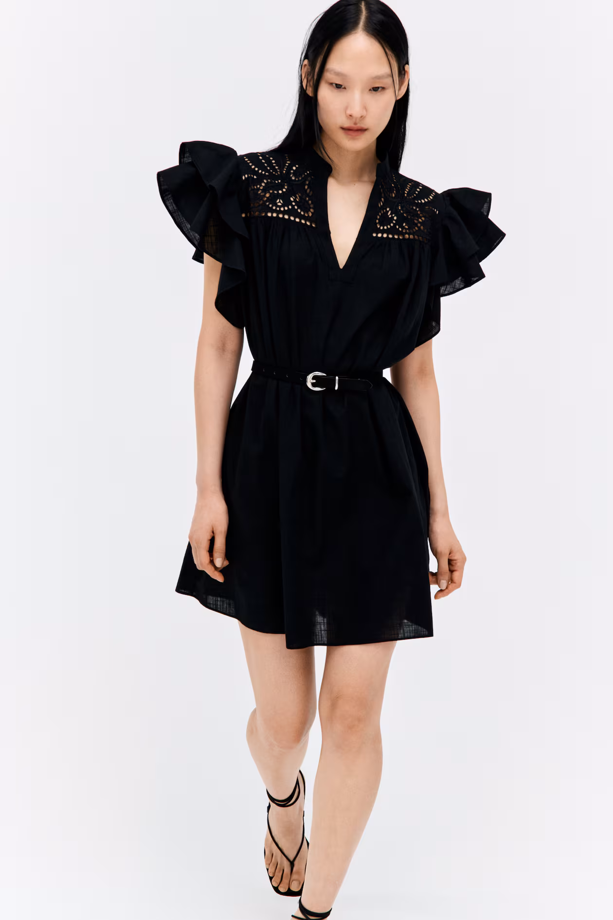 Flutter-Sleeve Dress with Eyelet Embroidery