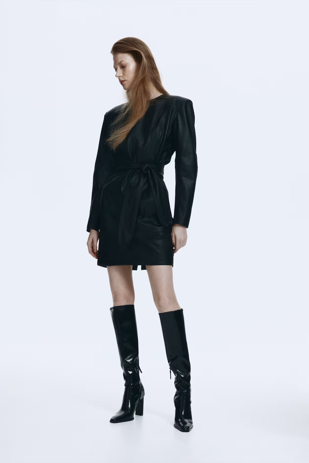 Coated Tie-Belt Dress