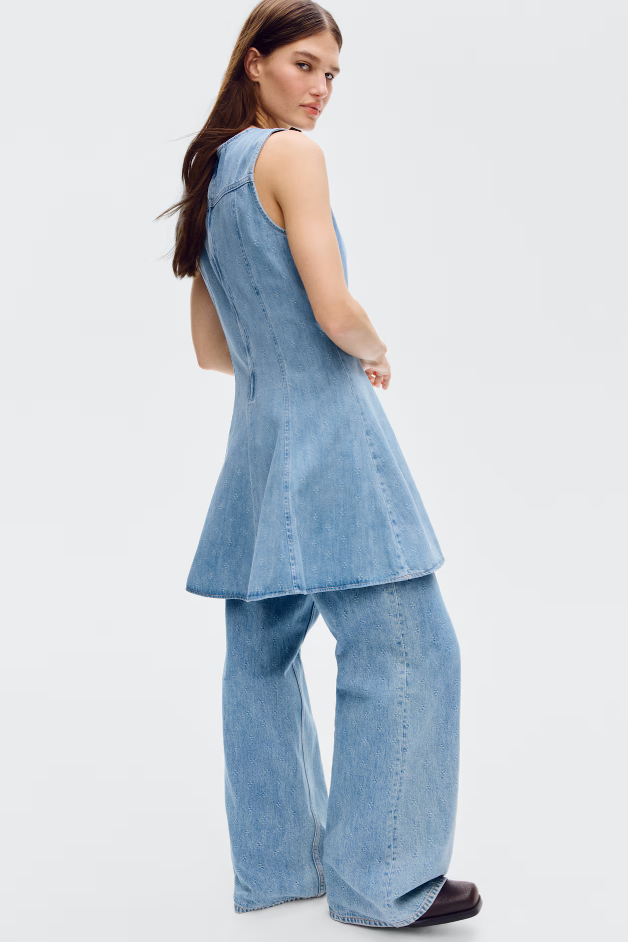 Flared-Skirt Denim Dress