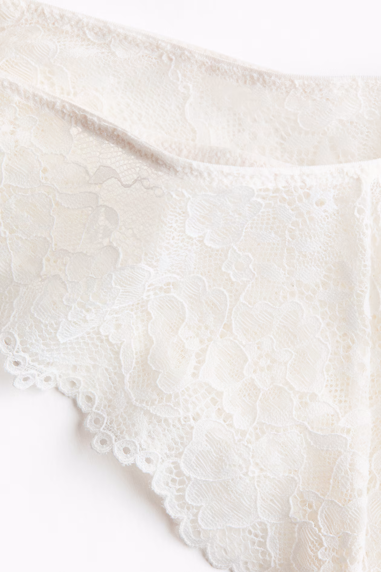 Briefs in lace with a low, V-cut waist, high-cut back, and lined gusset.