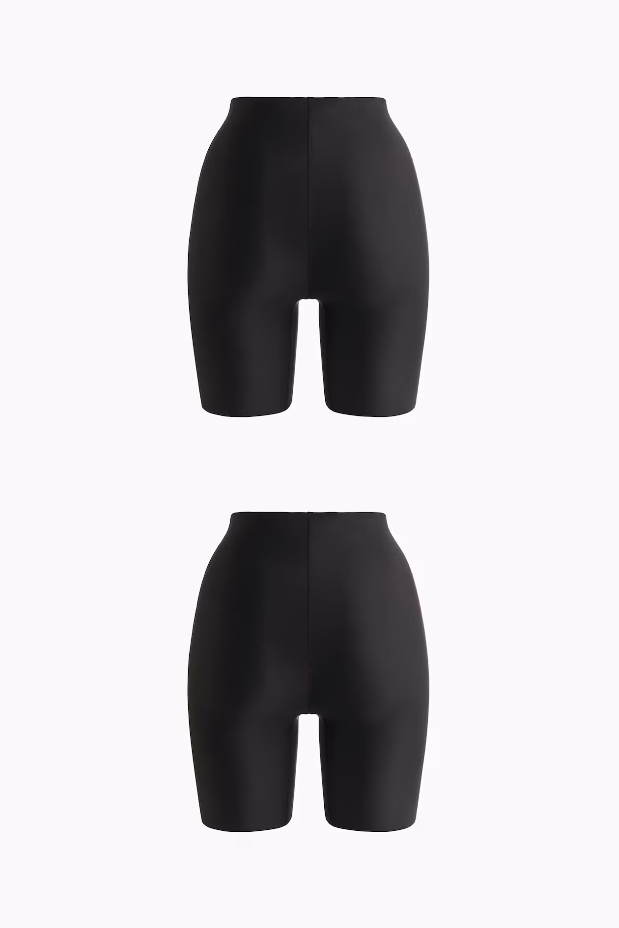 Shaping bikers in microfiber with a light sculpting effect on tummy, thighs, and seat. High waist, lined gusset, and laser-cut edges around legs for seamless comfort and minimal visibility under clothes.