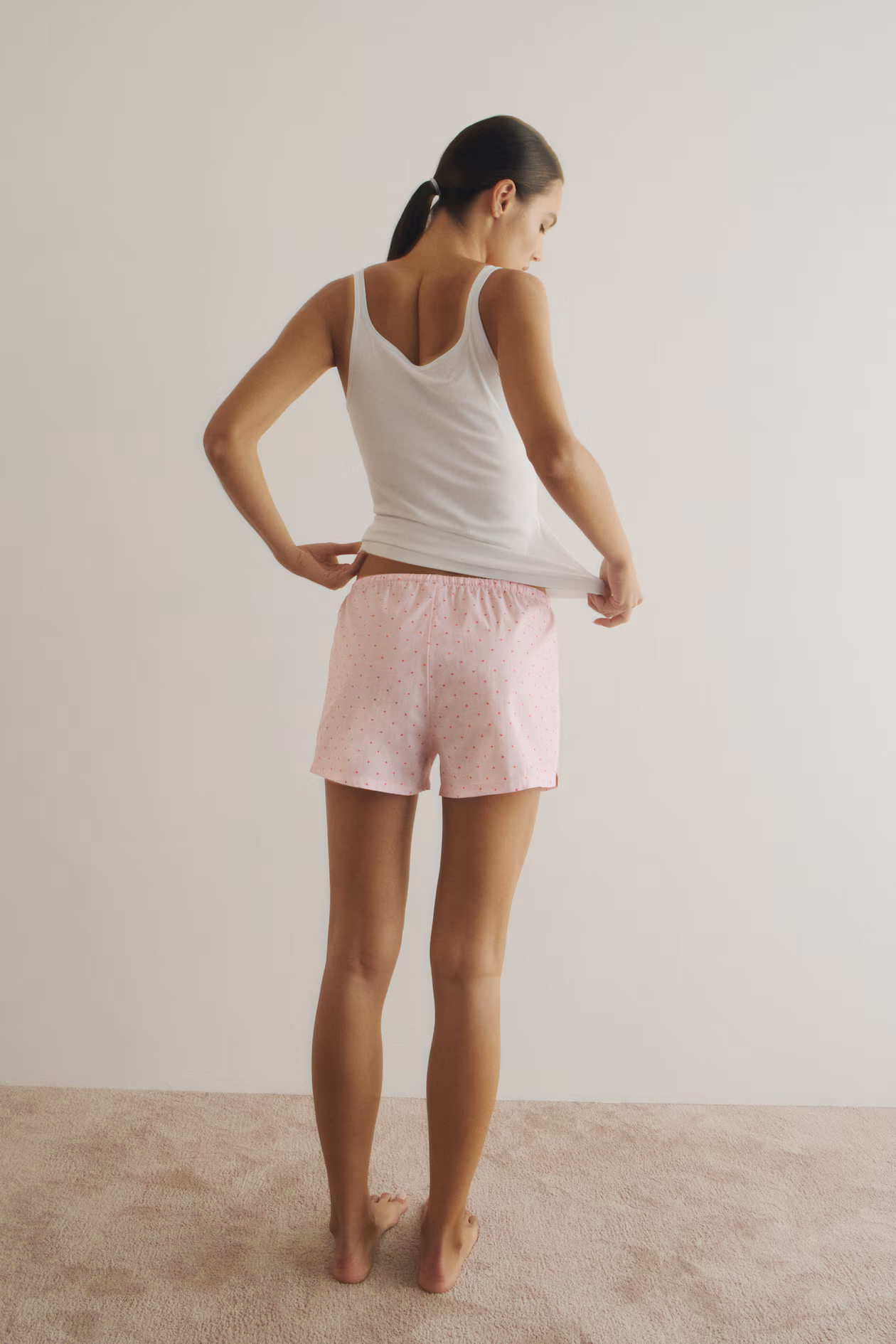 Pajama shorts in woven fabric with an elasticized, drawstring waistband. Small slit at hems.