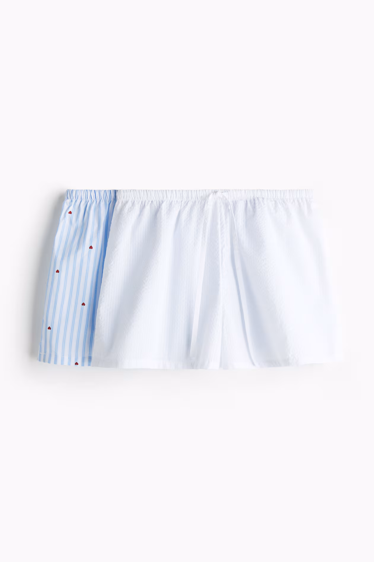 Pyjama shorts in soft cotton poplin. Relaxed fit with an elasticated drawstring waist, and a short slit at the side of the hem.