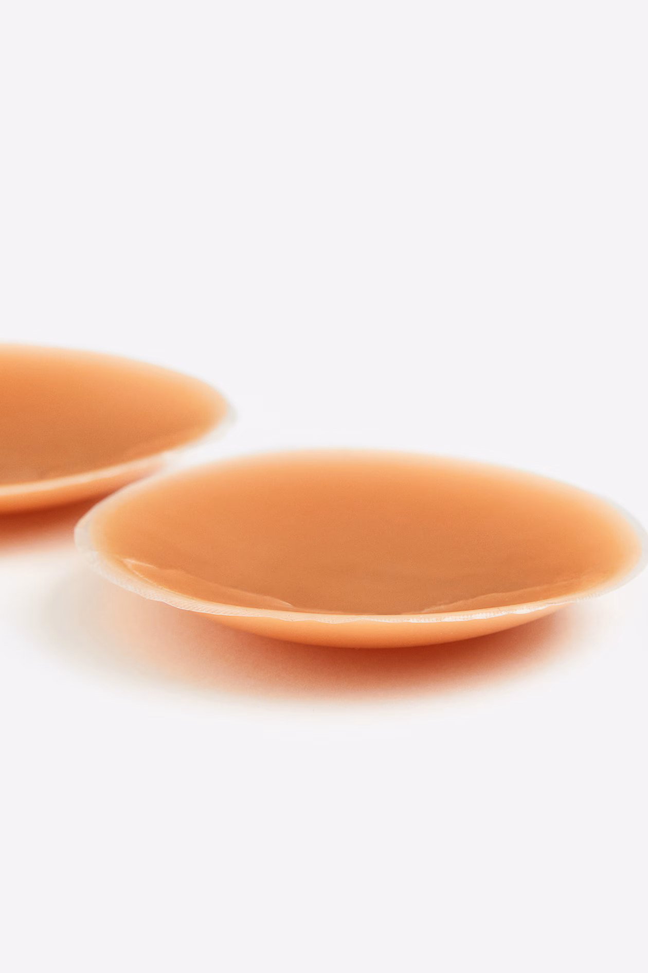 Soft, reusable, self-adhesive nipple covers in silicone. Diameter approx. 2 1/2 in.