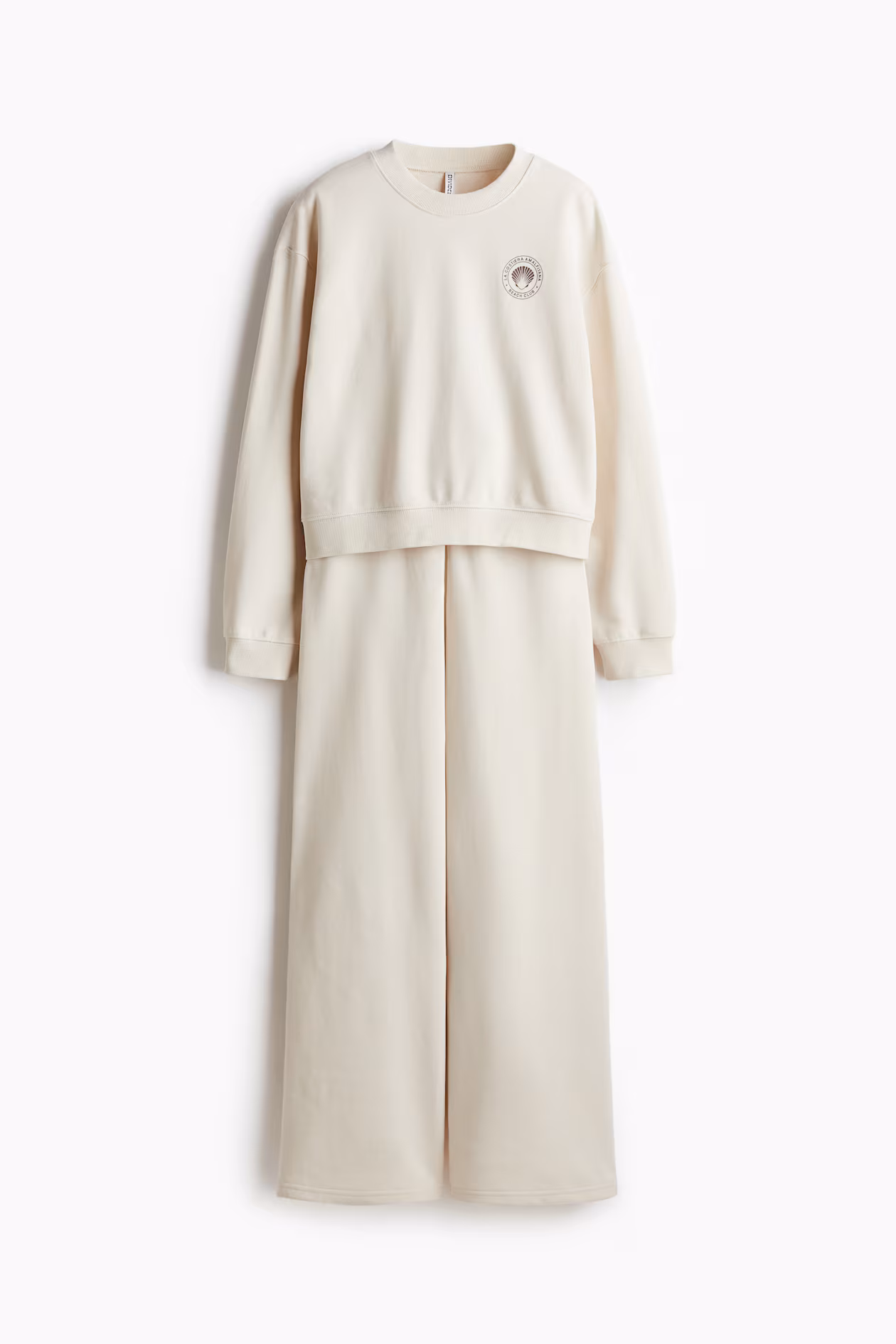 Set with a sweatshirt and joggers in lightweight fabric. Sweatshirt with a round neckline, dropped shoulders, long sleeves, and ribbing at neckline, cuffs, and hem. Straight-leg joggers with a ribbed, elasticized waistband with drawstring.