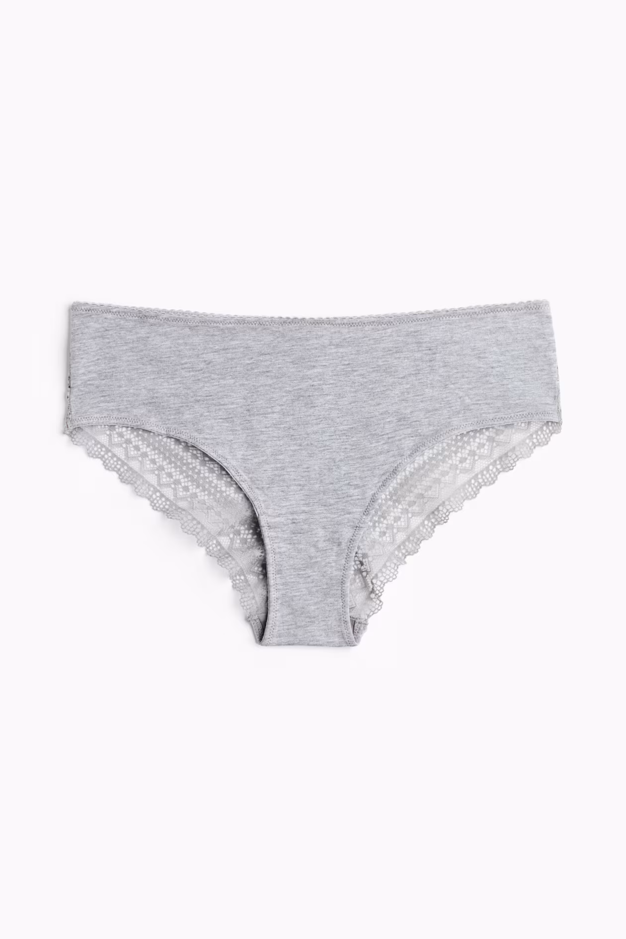 Briefs in cotton jersey and lace. Mid-rise waist, cutaway coverage at back, and lined gusset.