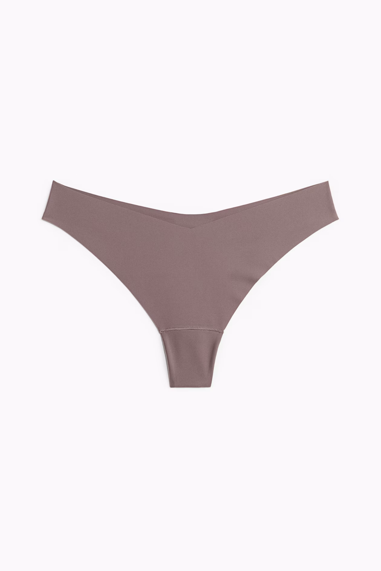 Thong briefs in microfiber with laser-cut edges for seamless comfort and minimal visibility under clothes. Low, V-shaped waist and lined gusset.