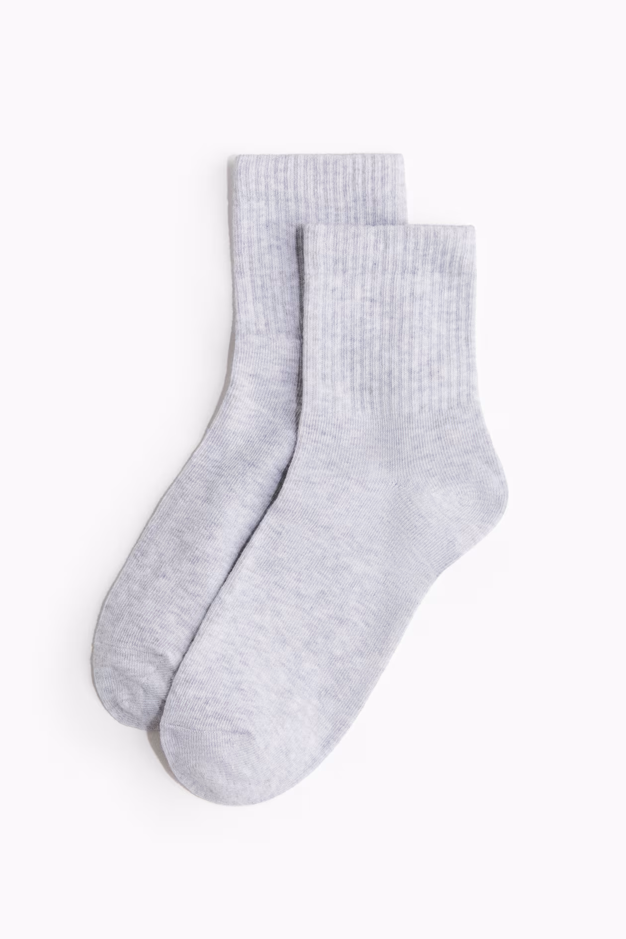 Soft, fine-knit socks. Ribbed leg sections with elasticized tops.
