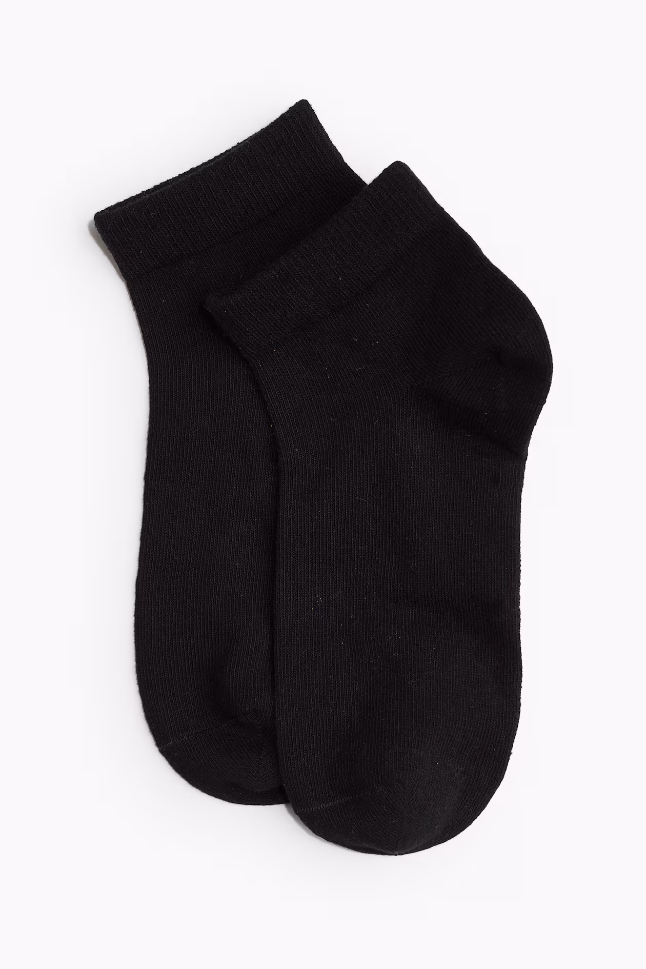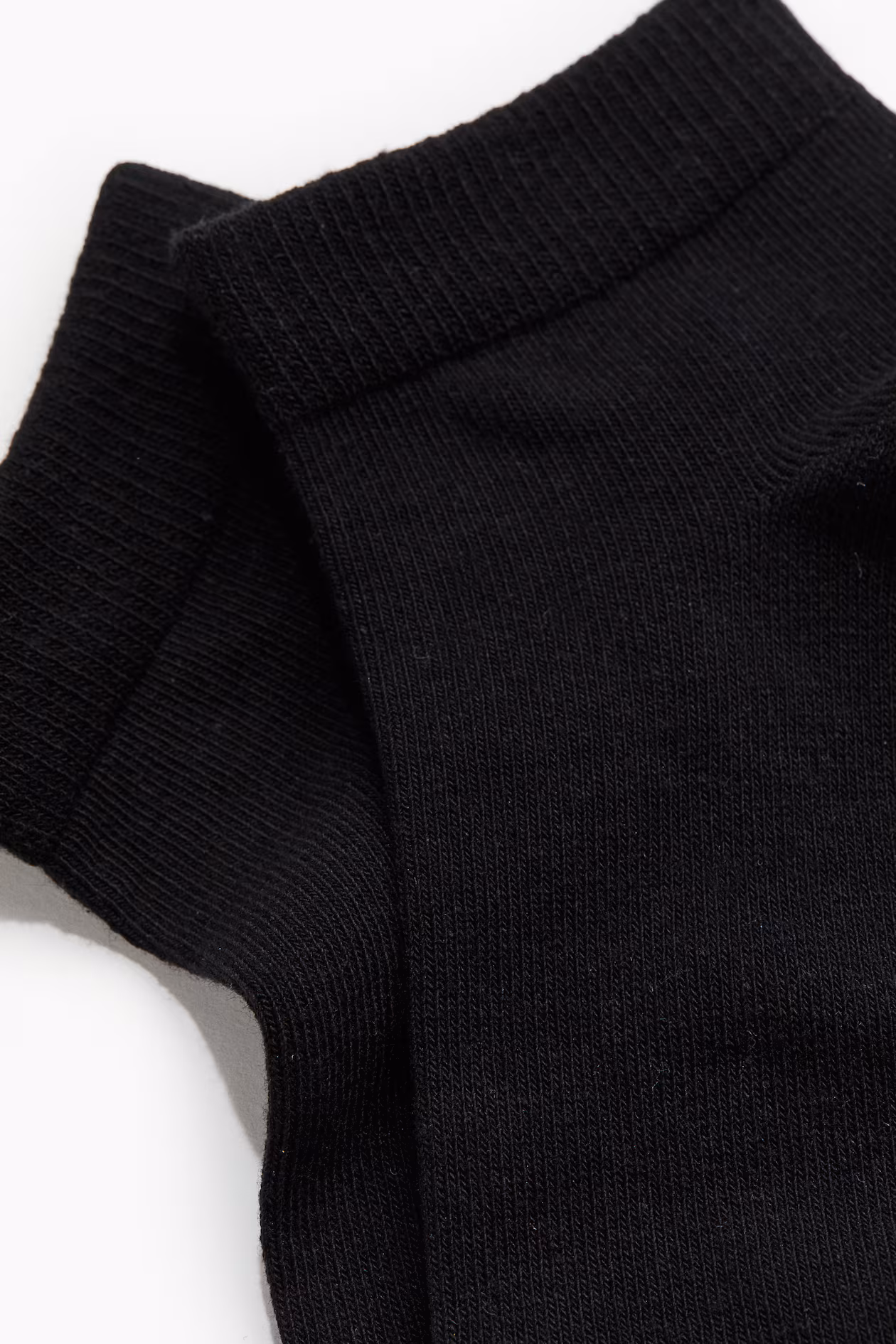 Fine-knit ankle socks in a soft cotton blend with ribbed elastic at top.