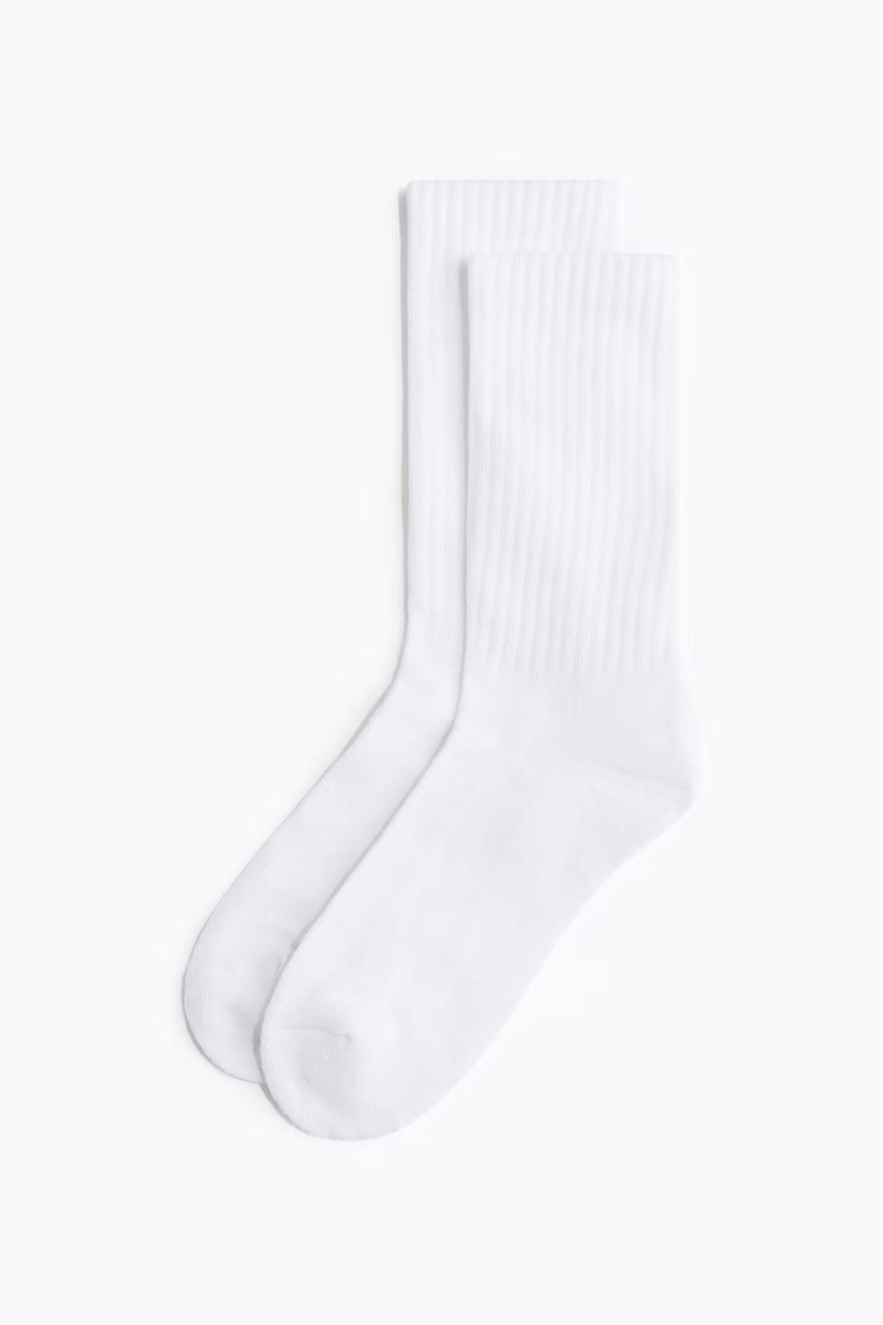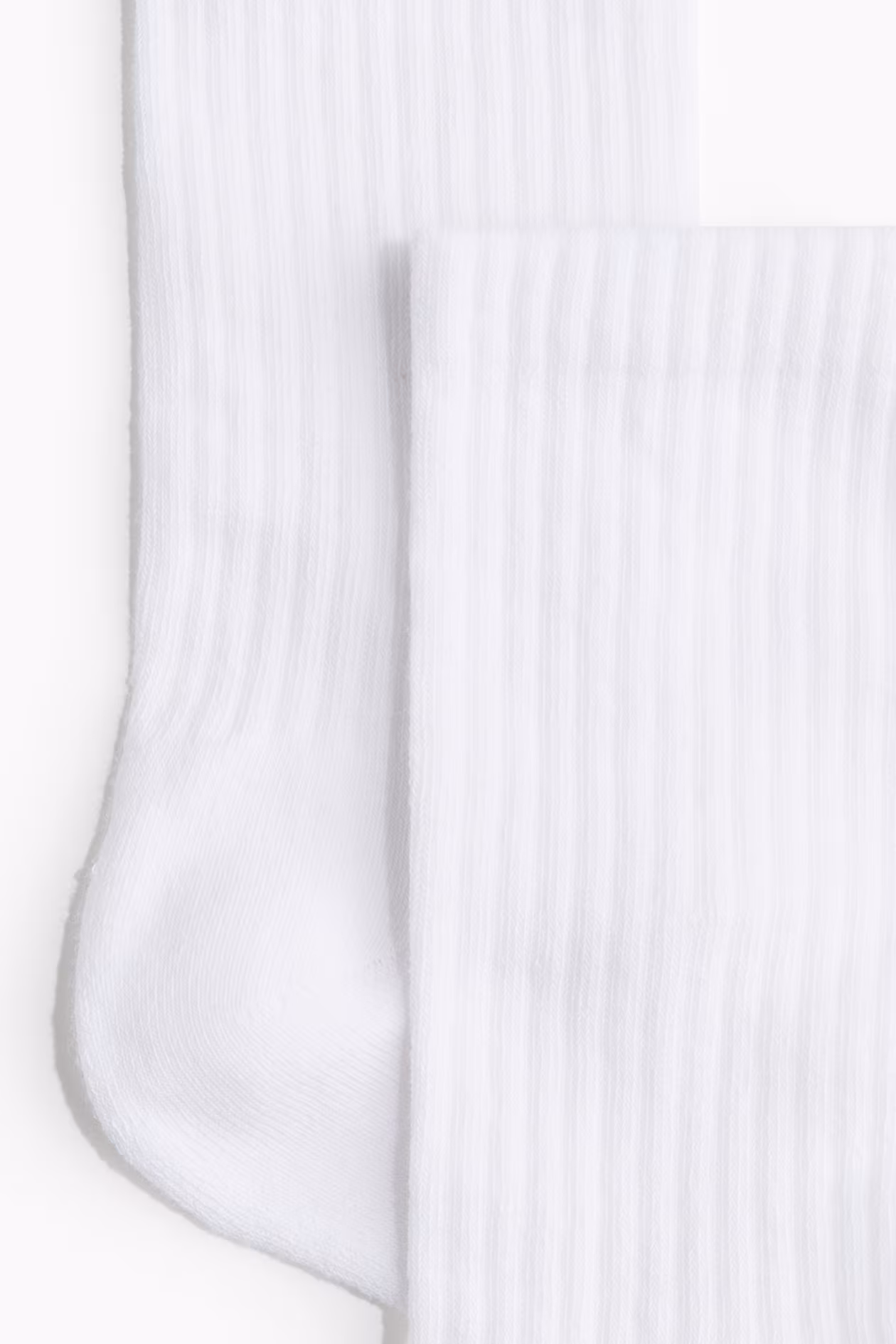 Fine-knit socks in a soft cotton blend. Ribbed leg sections with elasticized tops.