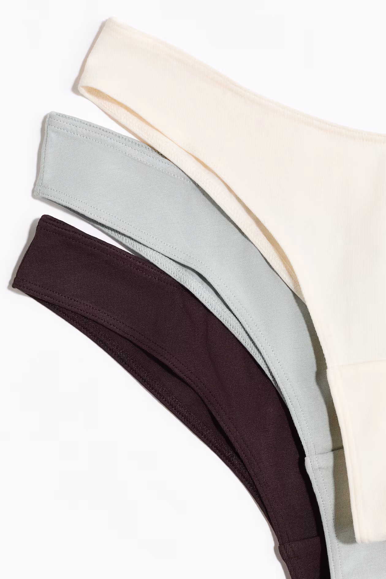 Briefs in cotton. Low, V-cut waist, high-cut back, and lined gusset.