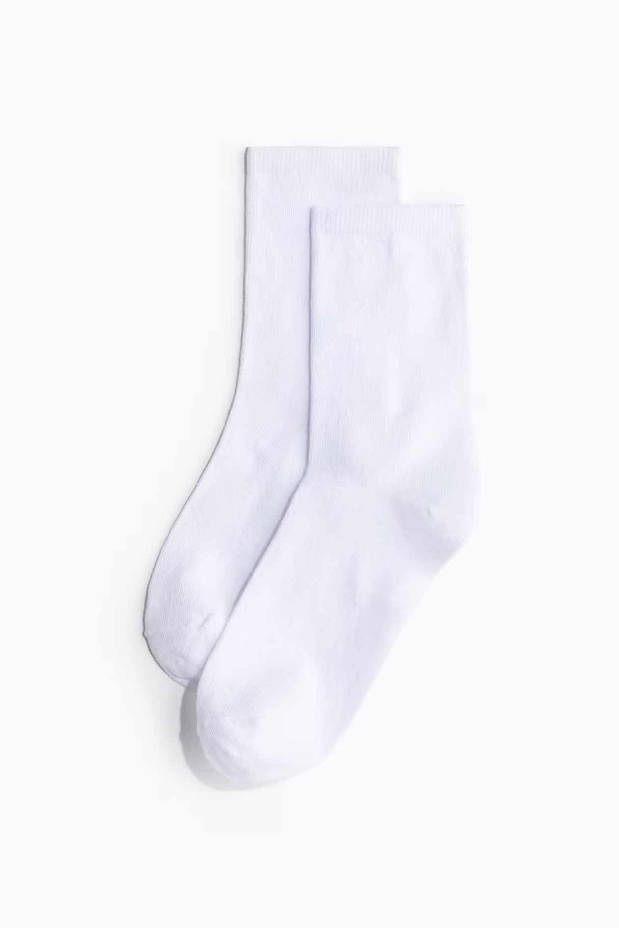 Fine-knit socks in a soft cotton blend with elasticized tops.