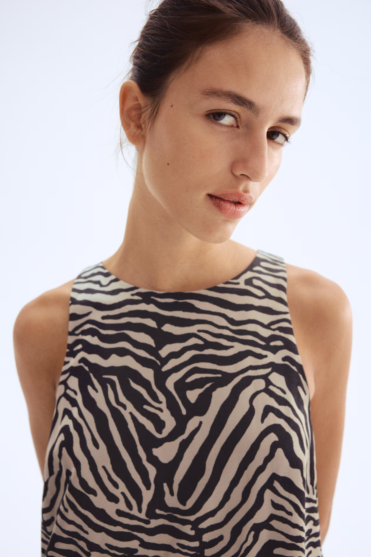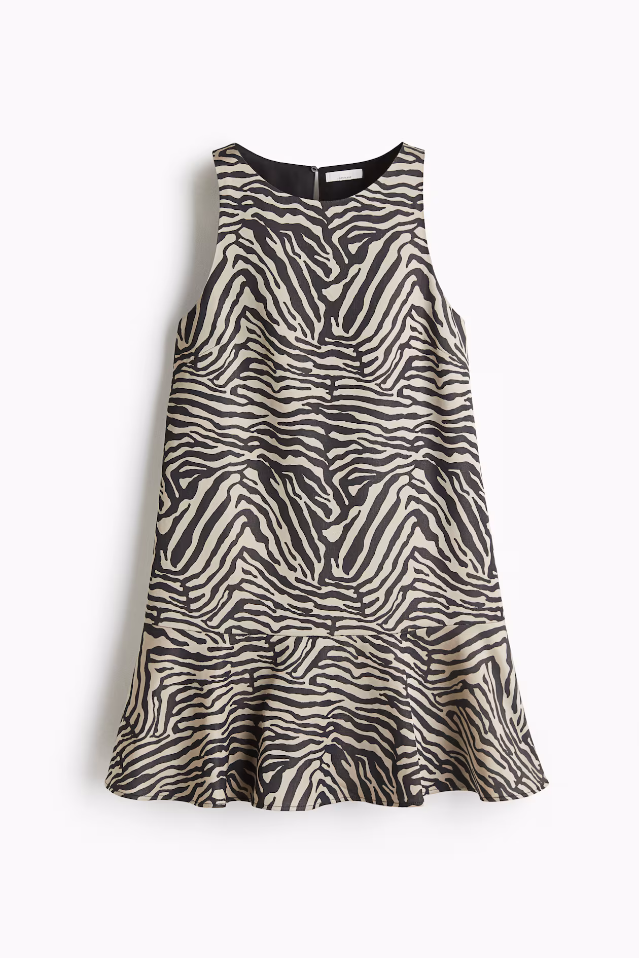 Short, sleeveless, A-line dress in a woven linen blend. Round neckline, keyhole opening at back with a concealed button, and a circle-cut hem for added volume. Lined.