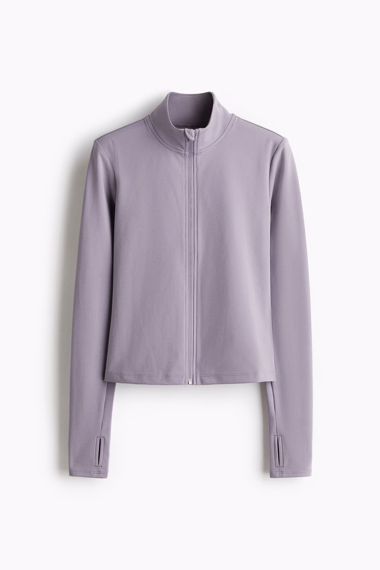 Slim-fit, short activewear jacket in functional fabric made with SoftMove™ for the ultimate in softness and comfort plus contouring support, and DryMove™ to wick away moisture from skin. Stand-up collar, zipper at front with anti-chafe chin guard, and extra-long sleeves with thumbholes.