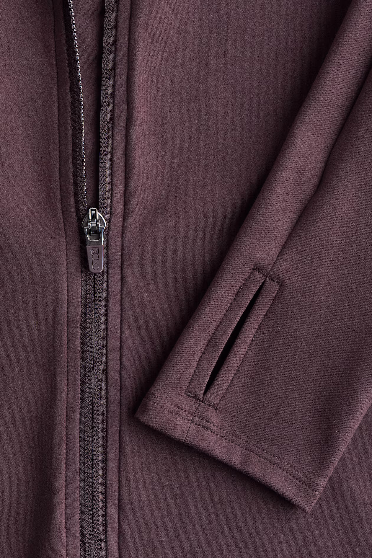 Slim-fit, short activewear jacket in functional fabric made with SoftMove™ for the ultimate in softness and comfort plus contouring support, and DryMove™ to wick away moisture from skin. Stand-up collar, zipper at front with anti-chafe chin guard, and extra-long sleeves with thumbholes.