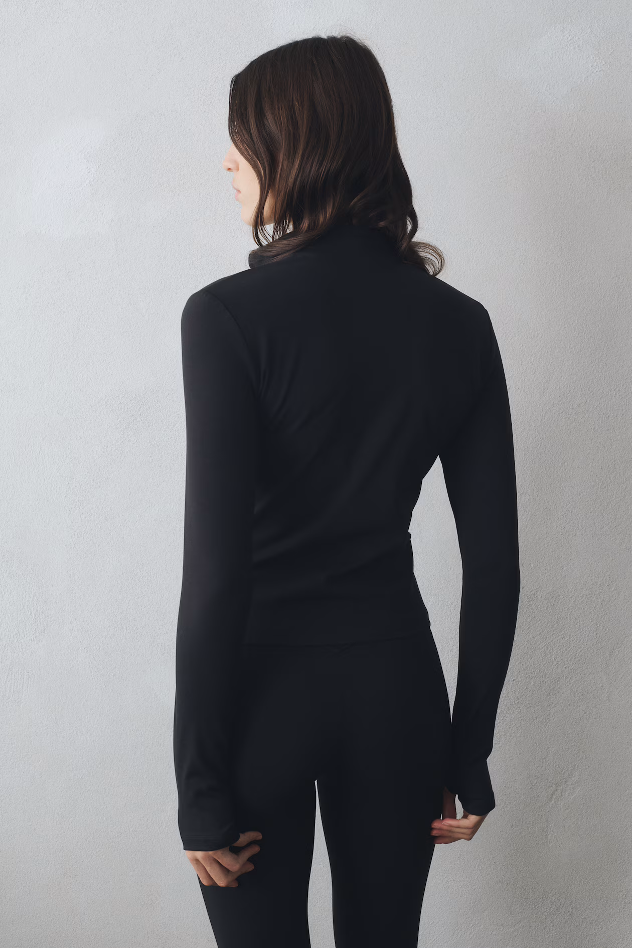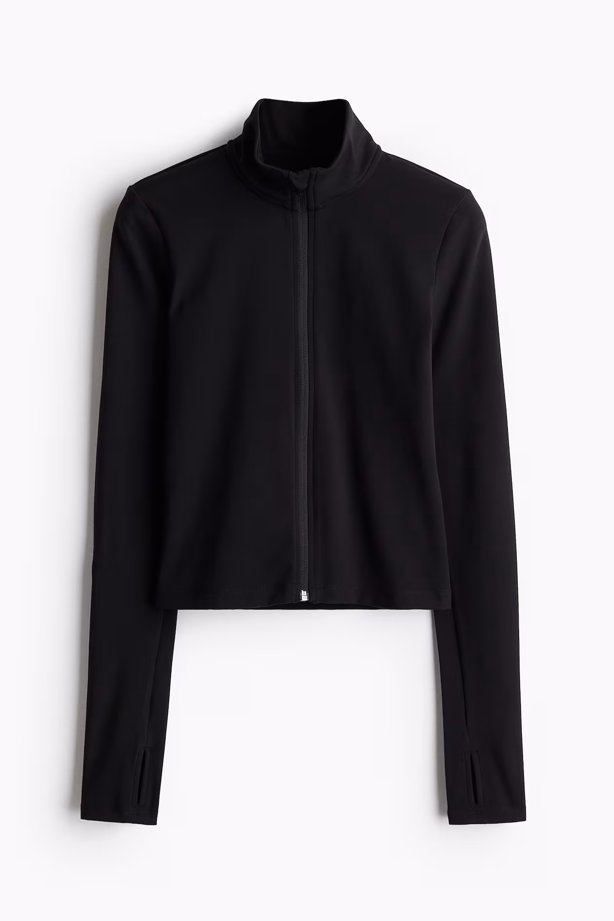 Slim-fit, short activewear jacket in functional fabric made with SoftMove™ for the ultimate in softness and comfort plus contouring support, and DryMove™ to wick away moisture from skin. Stand-up collar, zipper at front with anti-chafe chin guard, and extra-long sleeves with thumbholes.