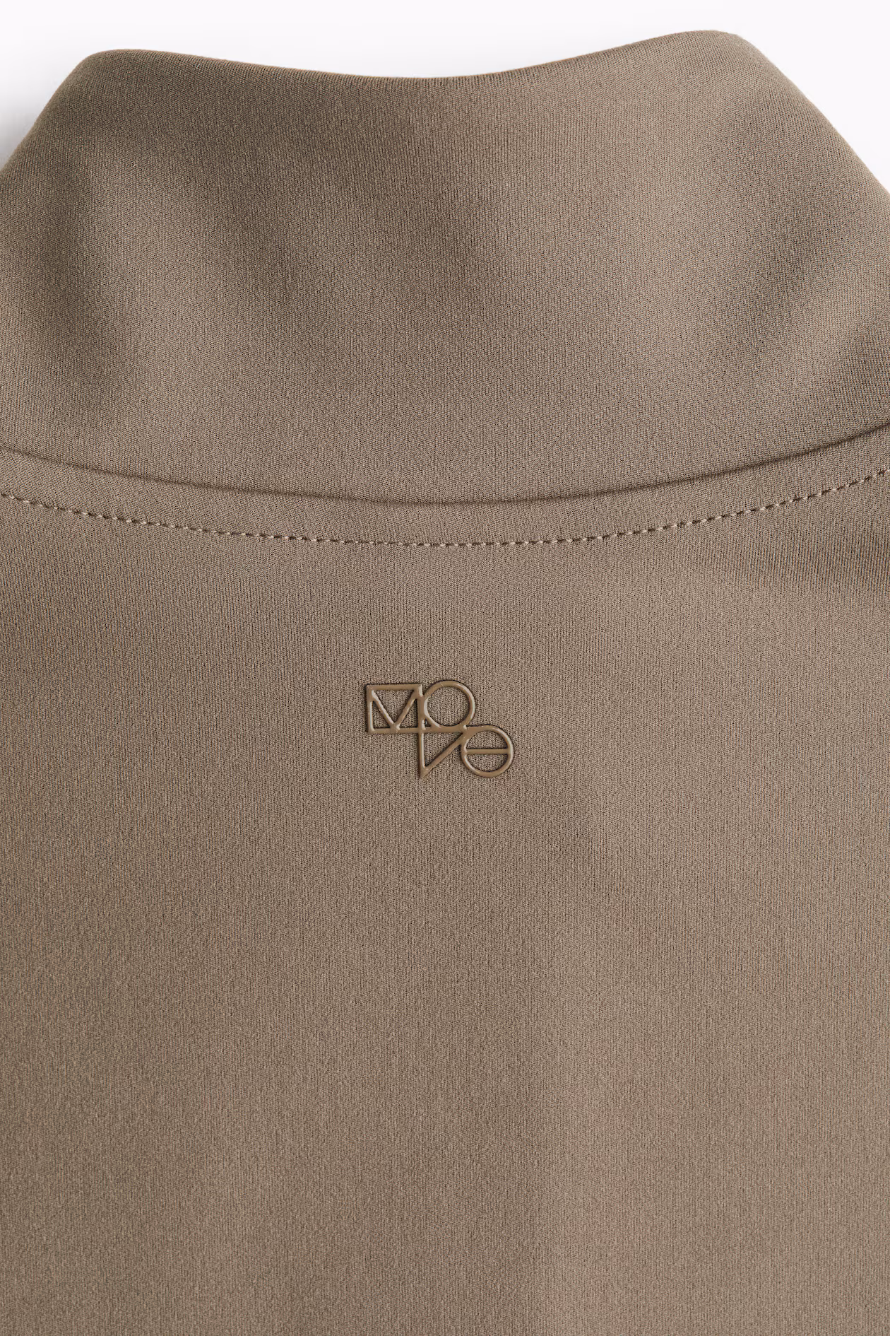 Slim-fit, short activewear jacket in functional fabric made with SoftMove™ for the ultimate in softness and comfort plus contouring support, and DryMove™ to wick away moisture from skin. Stand-up collar, zipper at front with anti-chafe chin guard, and extra-long sleeves with thumbholes.