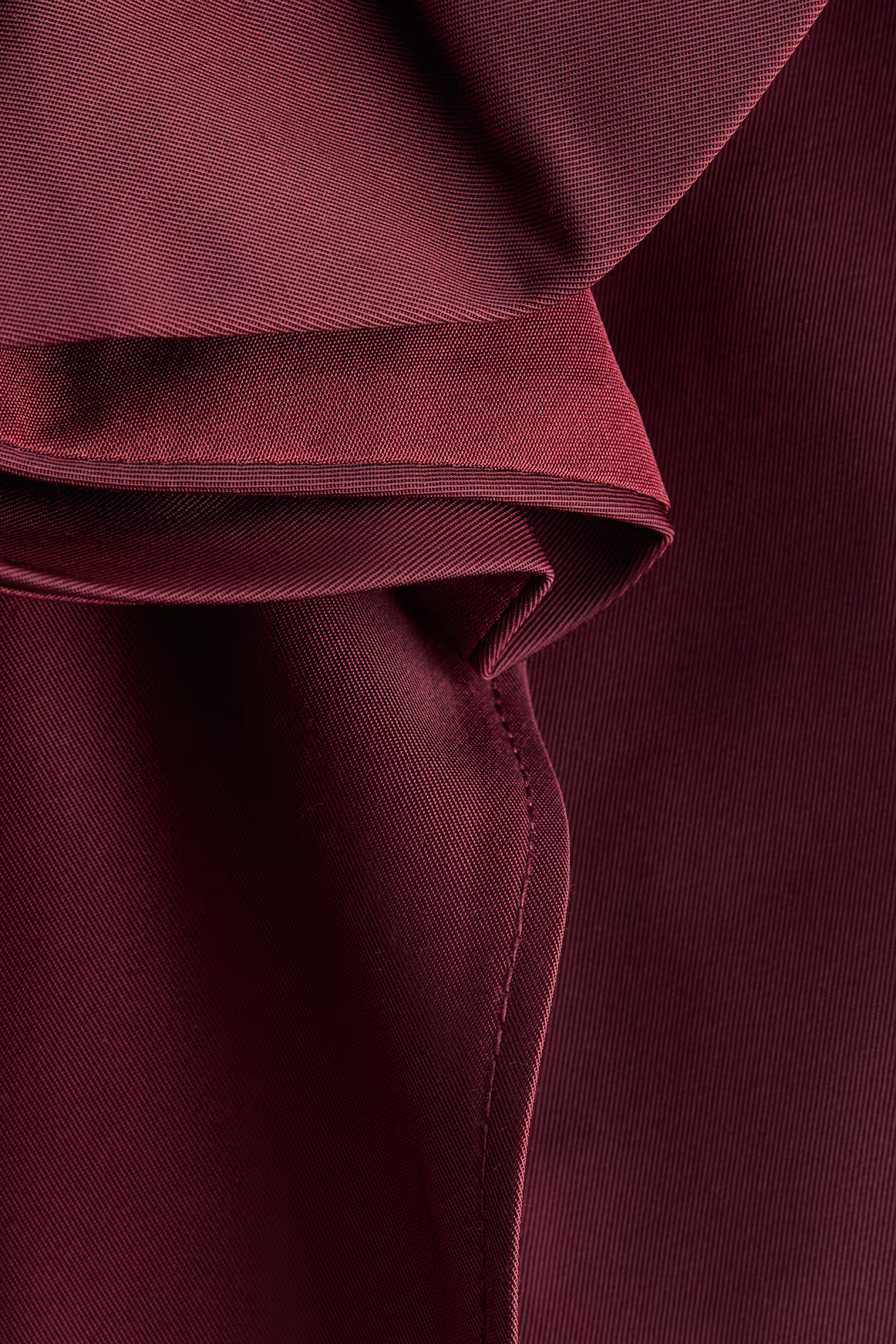 Fitted mini skirt in woven fabric with shaping darts at waist. High waist, sewn wrapover front with a large rose appliqué at front, and a concealed zipper at back. Unlined.