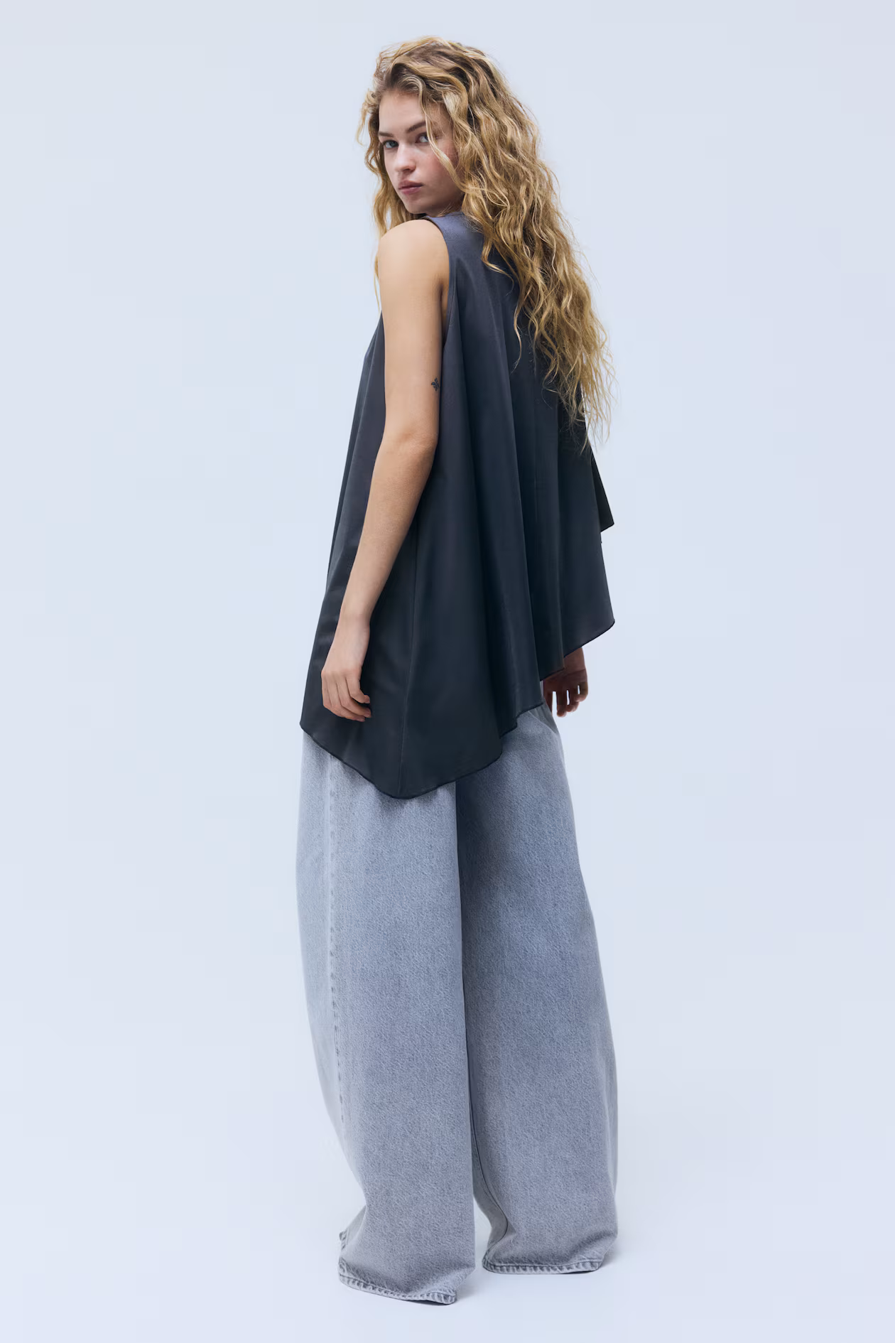 Oversized top in interlock jersey. Boat neck, one cape sleeve, and an asymmetric hem.