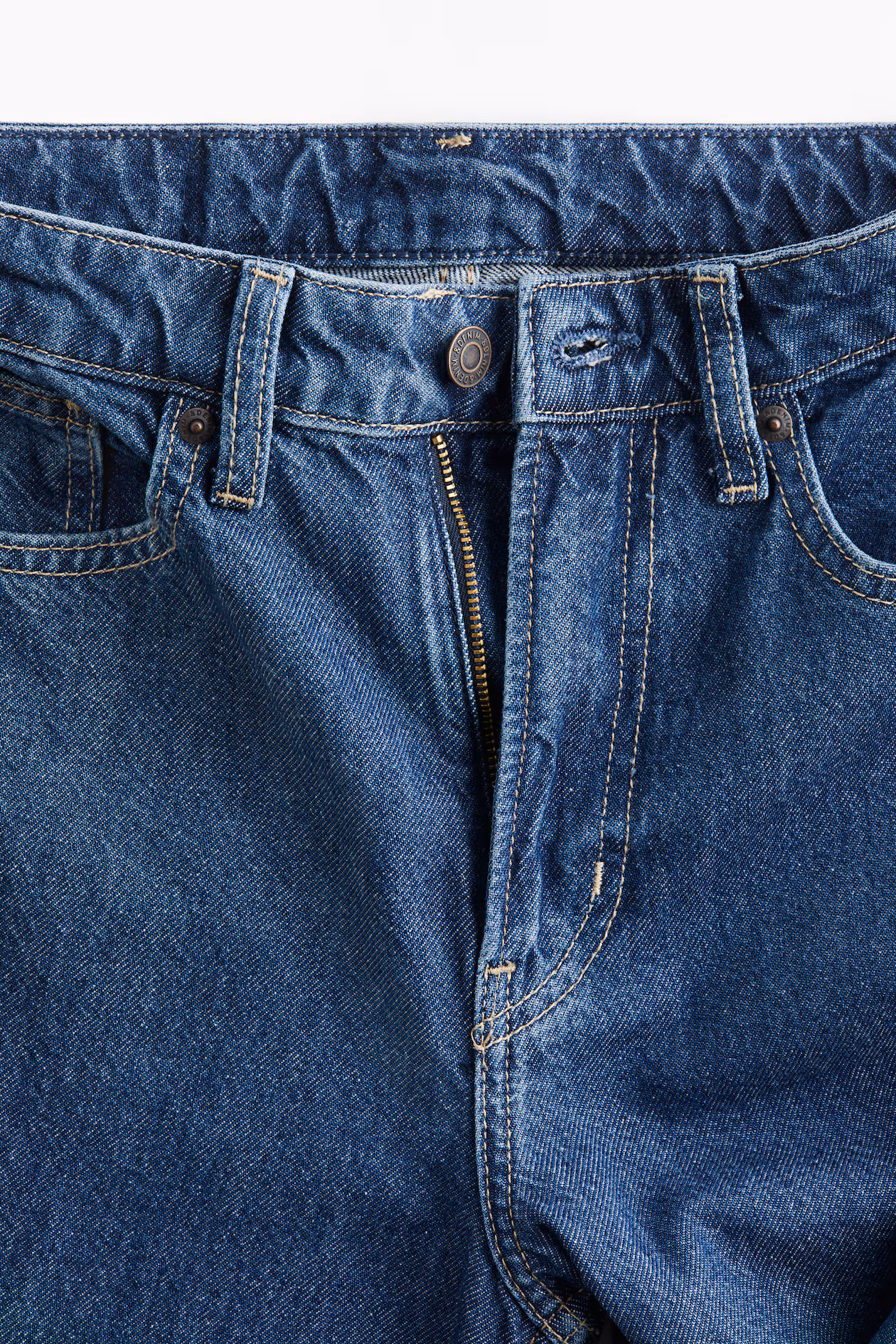 5-pocket jeans in rigid cotton denim that feels firm at first, softening and relaxing with wear. Regular fit from waist to hip and wide cut from thigh to hem. High waist and zip fly with button. Wide, regular-length legs, designed to fall at top of foot with little or no stacking.
