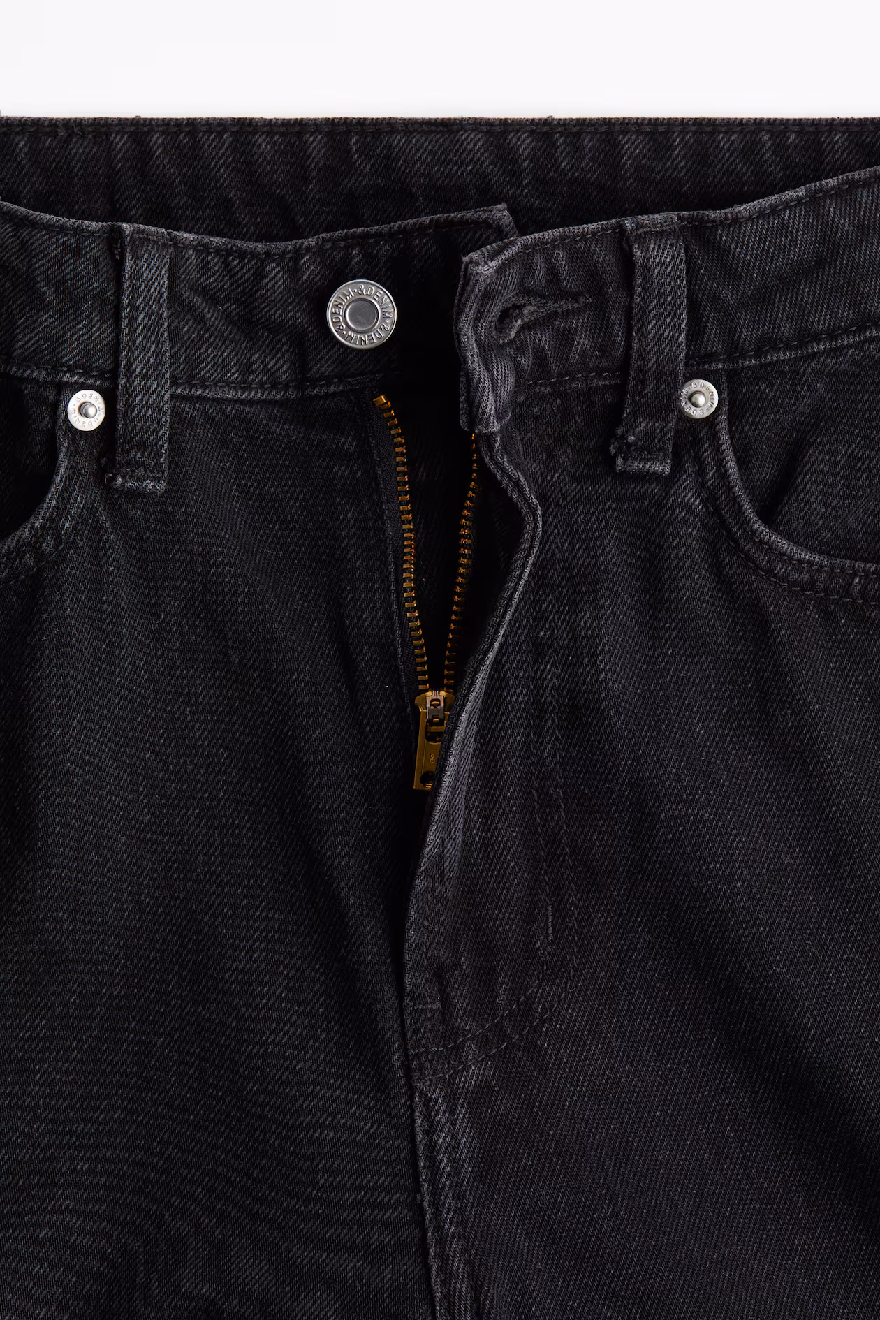 5-pocket jeans in rigid cotton denim that feels firm at first, softening and relaxing with wear. Regular fit from waist to hip and wide cut from thigh to hem. High waist and zip fly with button. Wide, regular-length legs, designed to fall at top of foot with little or no stacking.