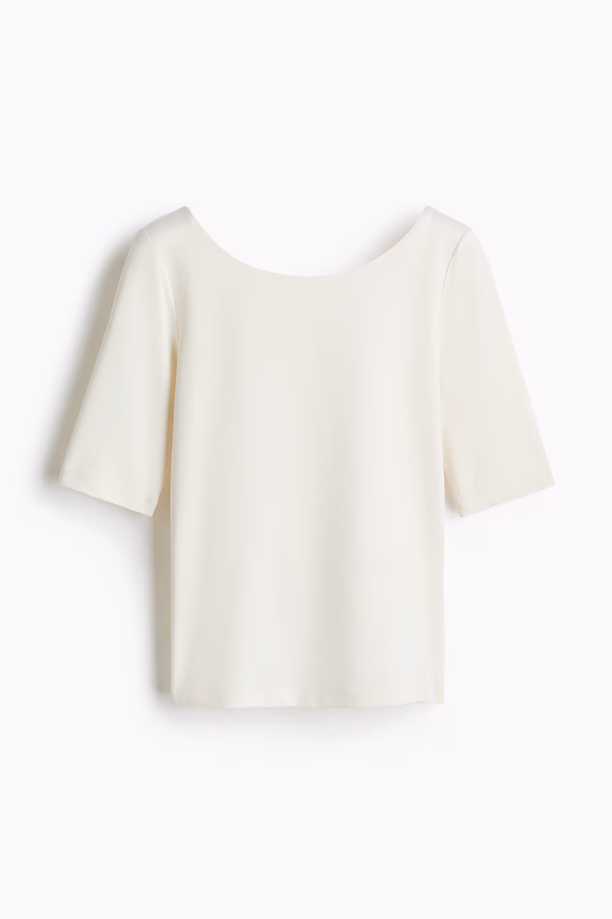 Fitted top in stretch jersey. Ballerina neckline, scoop back, and sleeves finishing just above elbows.