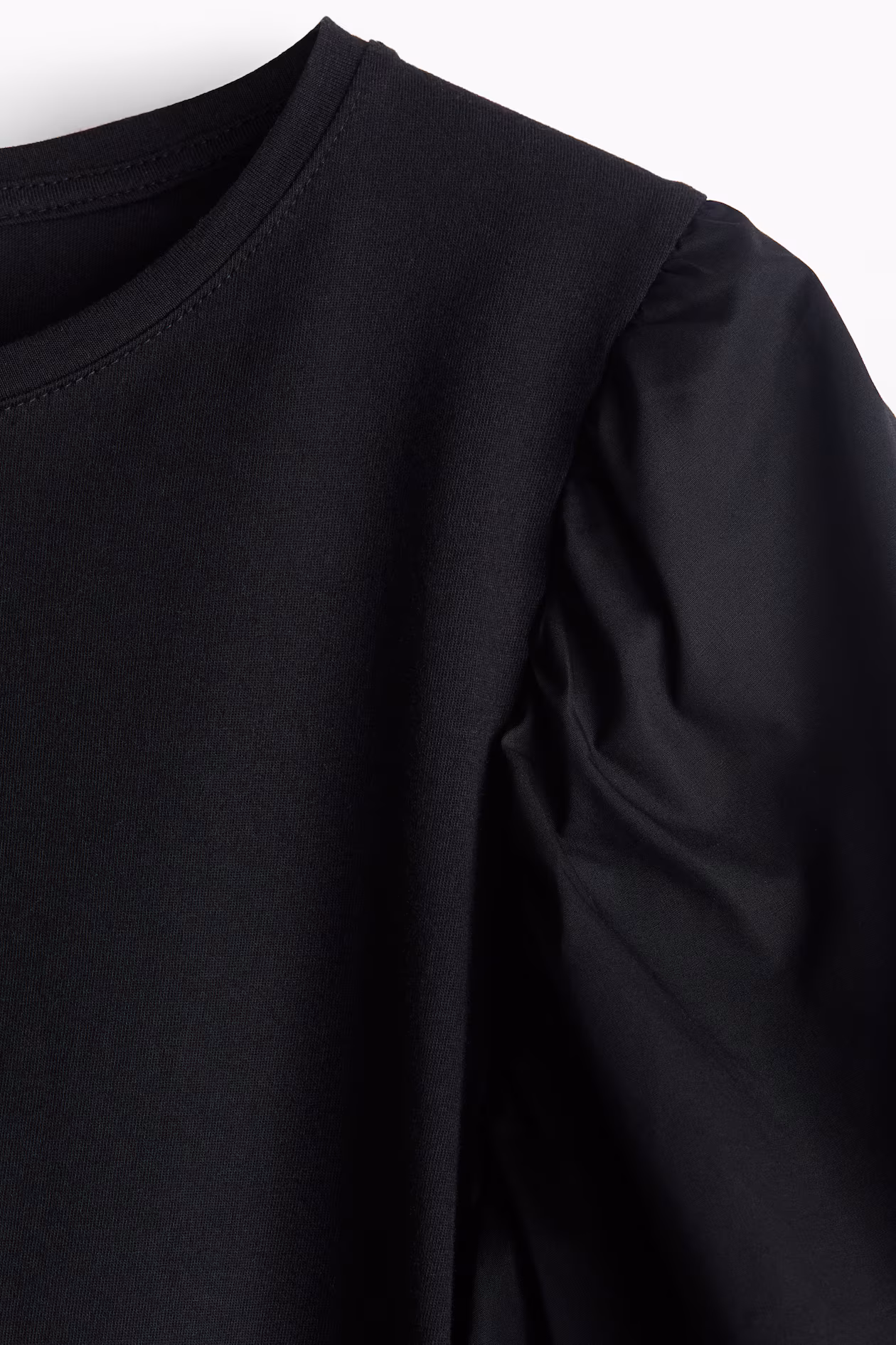 Top in cotton jersey with sleeves in woven cotton. Round neckline and short, jersey-lined balloon sleeves with elastic at cuffs. Straight-cut hem.
